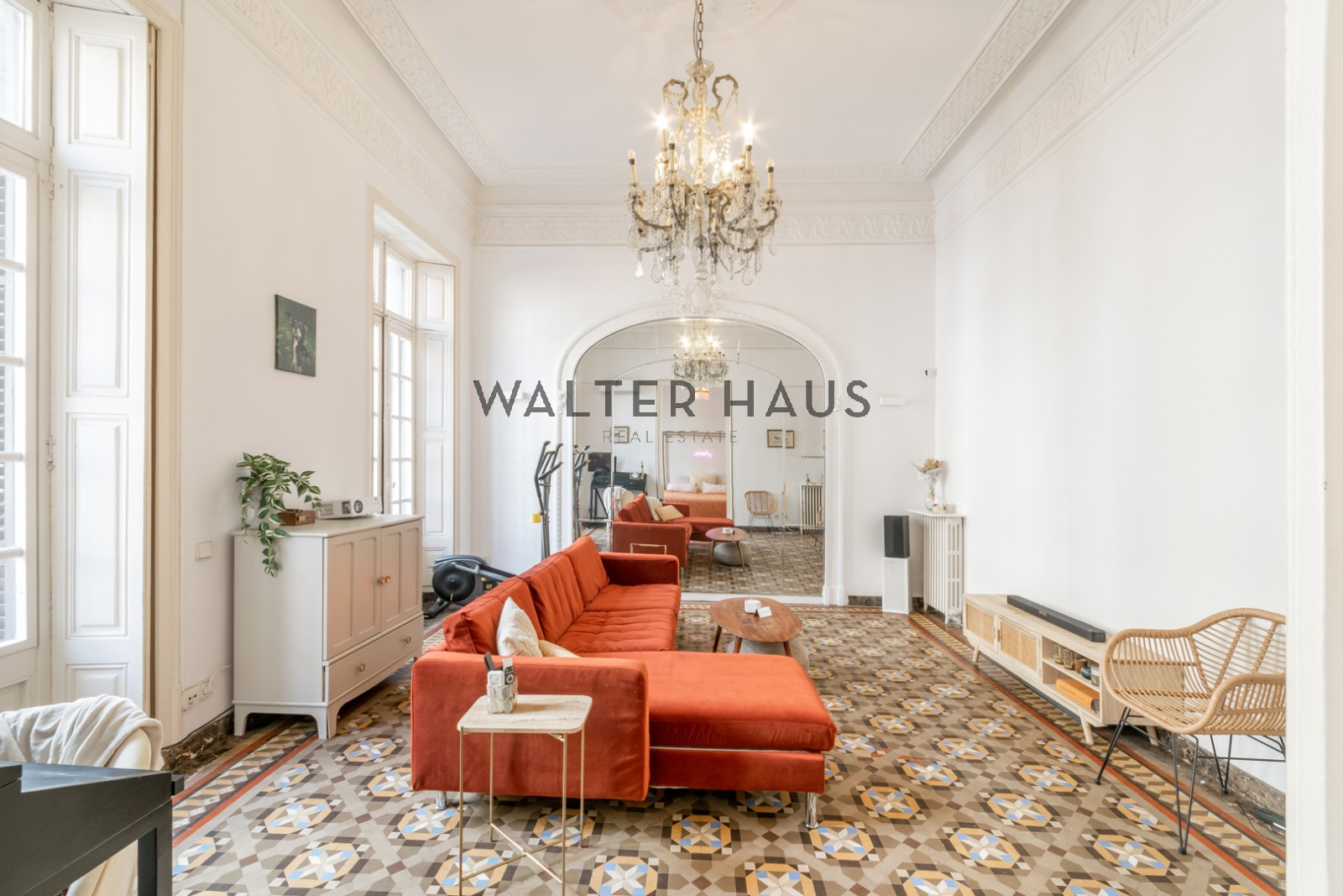 Se trata de una propiedad exclusiva en L’Eixample Dreta, no solo por sus dimensiones, sino por los elementos históricos como los suelos mosaico hidráulicos y techos altos con molduras artesanados. Destaca también su elegante escalera particular de mármol, que añade un toque de distinción y belleza a la propiedad.