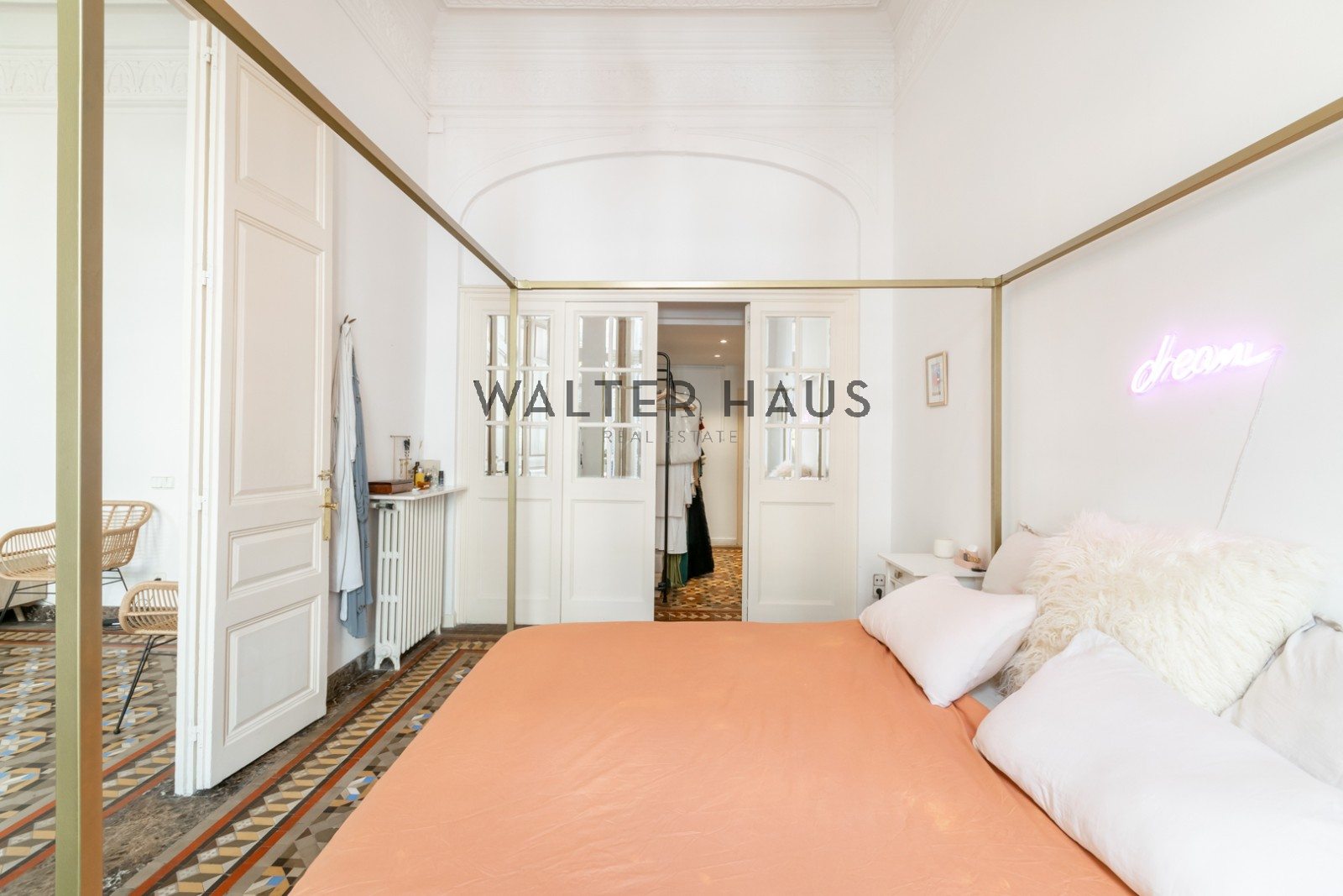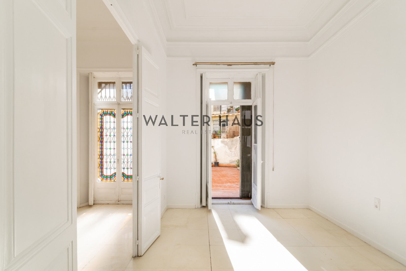 Exclusiva vivienda a reformar de 239 m² distribuidos en 173,97 m² construidos de vivienda y 65,5 m² de terraza de uso exclusivo, ubicado en la zona de la Eixample Dreta en una preciosa finca regia.