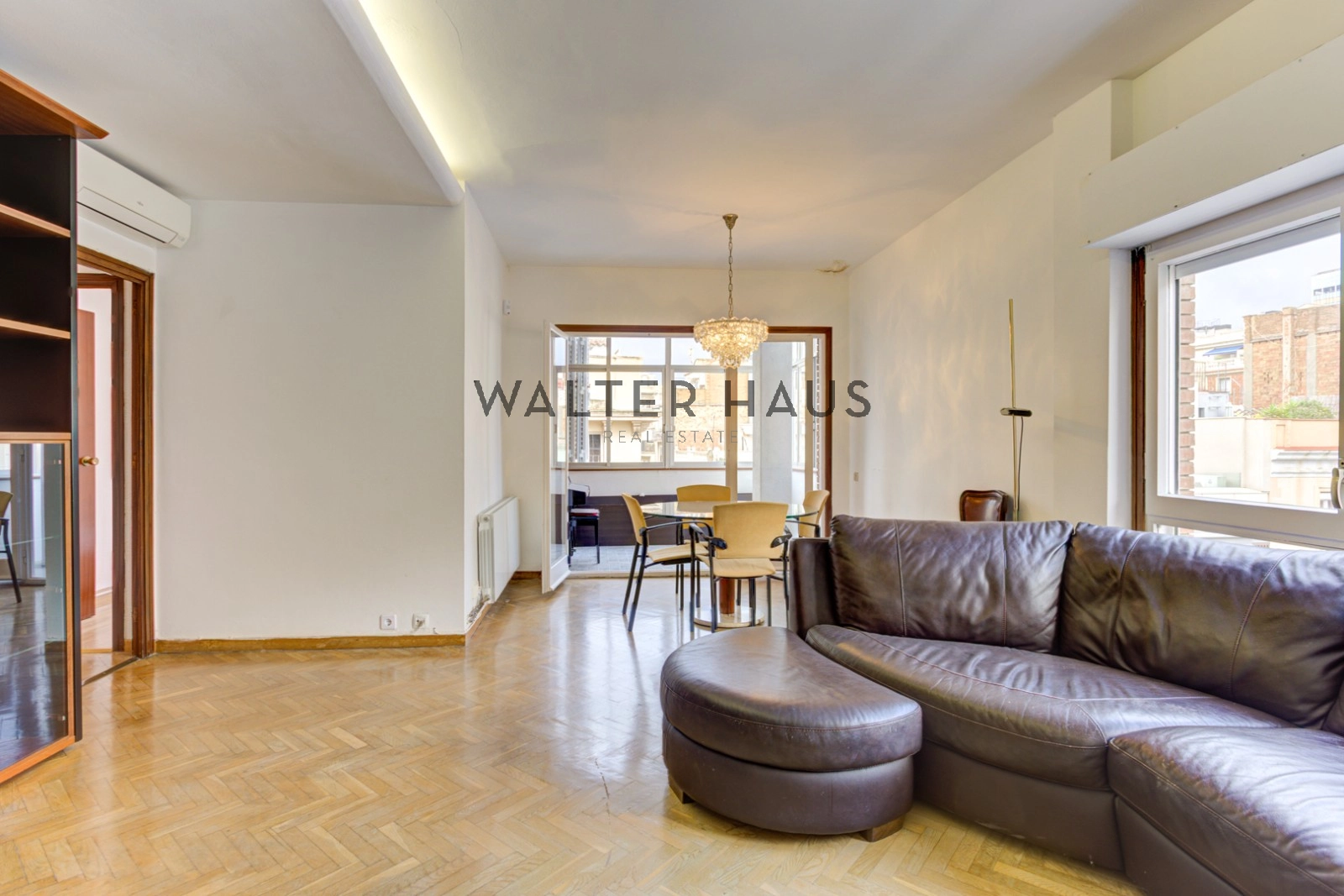 Amplia y luminosa vivienda de 107 m² construidos, más 10 m² de espacios exteriores, situada en la cuarta planta real de una finca con ascensor en el barrio de Galvany, Barcelona. La propiedad se encuentra en perfectas condiciones, pero puede ser reformada de acuerdo al gusto y las necesidades del comprador.