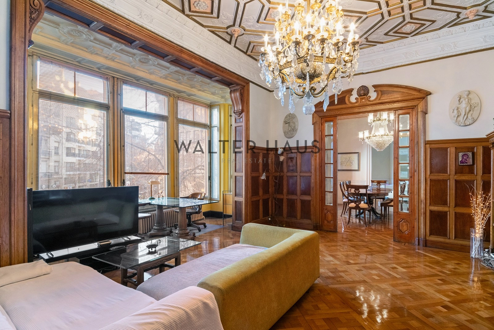 Exclusivo piso en venta de 210 m² construidos situado en la planta principal de una finca regia de 1910 restaurada en Eixample Dreta, una de las zonas más codiciadas de Barcelona. El edificio cuenta con ascensor y servicio de conserjería, y conserva detalles arquitectónicos originales que aportan carácter y autenticidad. Su distribución tipo abanico favorece la entrada de luz natural en la mayoría de las estancias, lo que refuerza la amplitud de los espacios.
