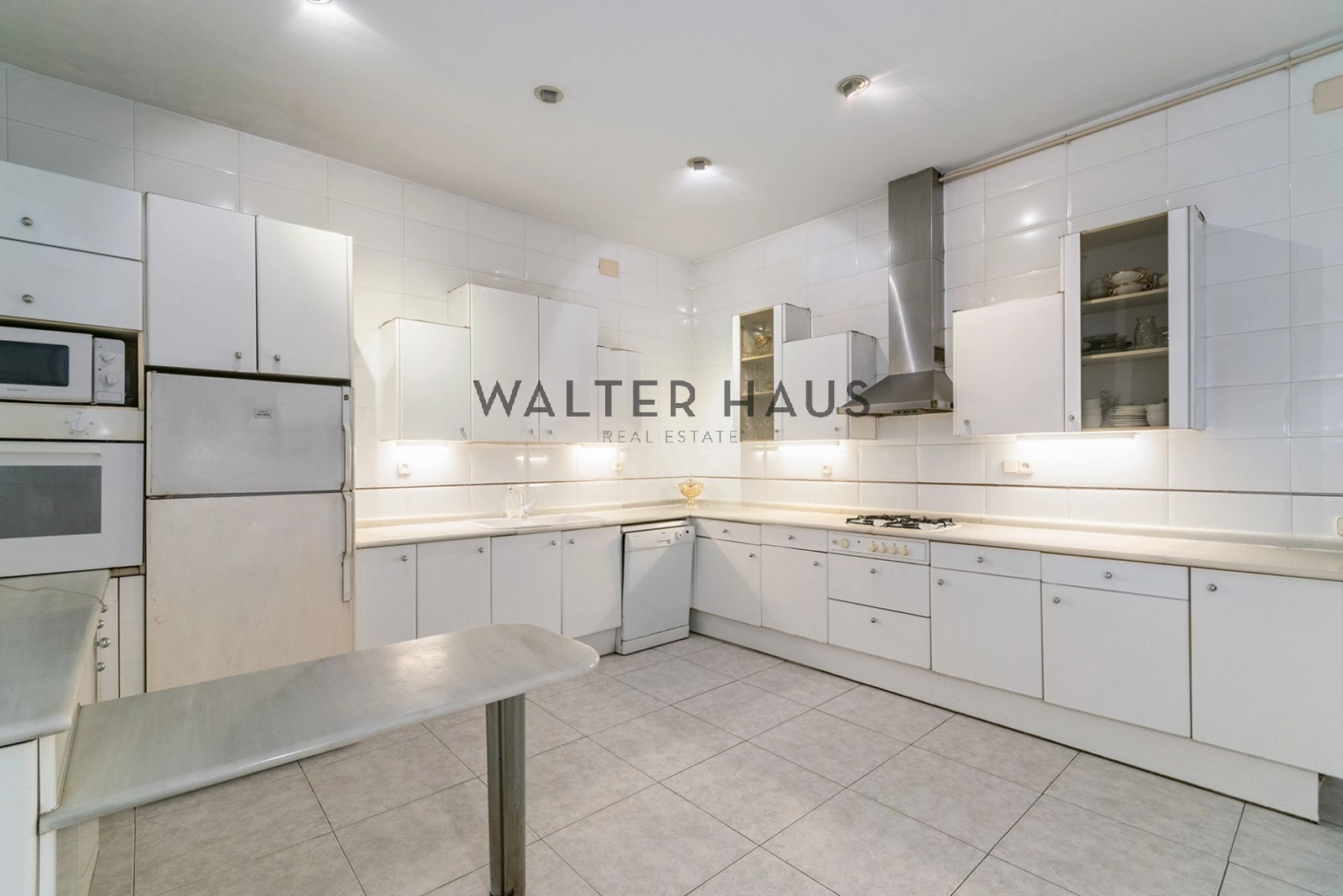 El inmueble se compone de tres dormitorios, uno de ellos en suite con vestidor y armarios empotrados de época, dos baños completos, una amplia cocina independiente con salida a lavadero y galería interior, un salón con balcón a la calle, un comedor también exterior y un despacho. Destacan elementos como los techos altos con molduras, vitrinas catalogadas, parqué elegante y puertas dobles ornamentadas, que elevan la calidad estética de la vivienda.