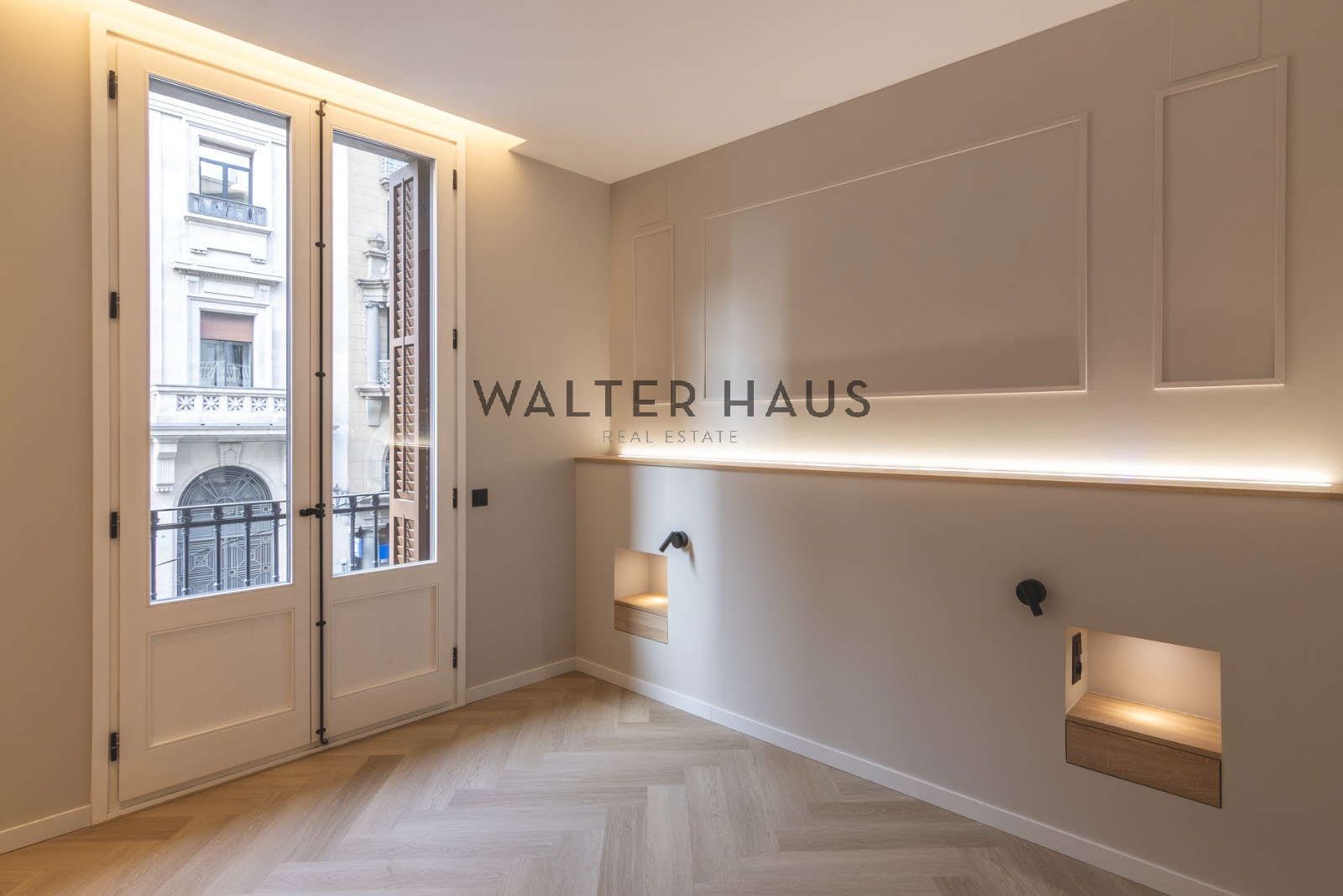 Elegante piso reformado de 131m² en la codiciada Vía Laietana, a pocos pasos de la Catedral y el Palau de la Música. Situado en un edificio clásico, esta vivienda combina la esencia histórica con materiales de alta calidad para ofrecer un hogar confortable y sofisticado. Su distribución funcional y sus espacios luminosos crean un ambiente cálido y acogedor.