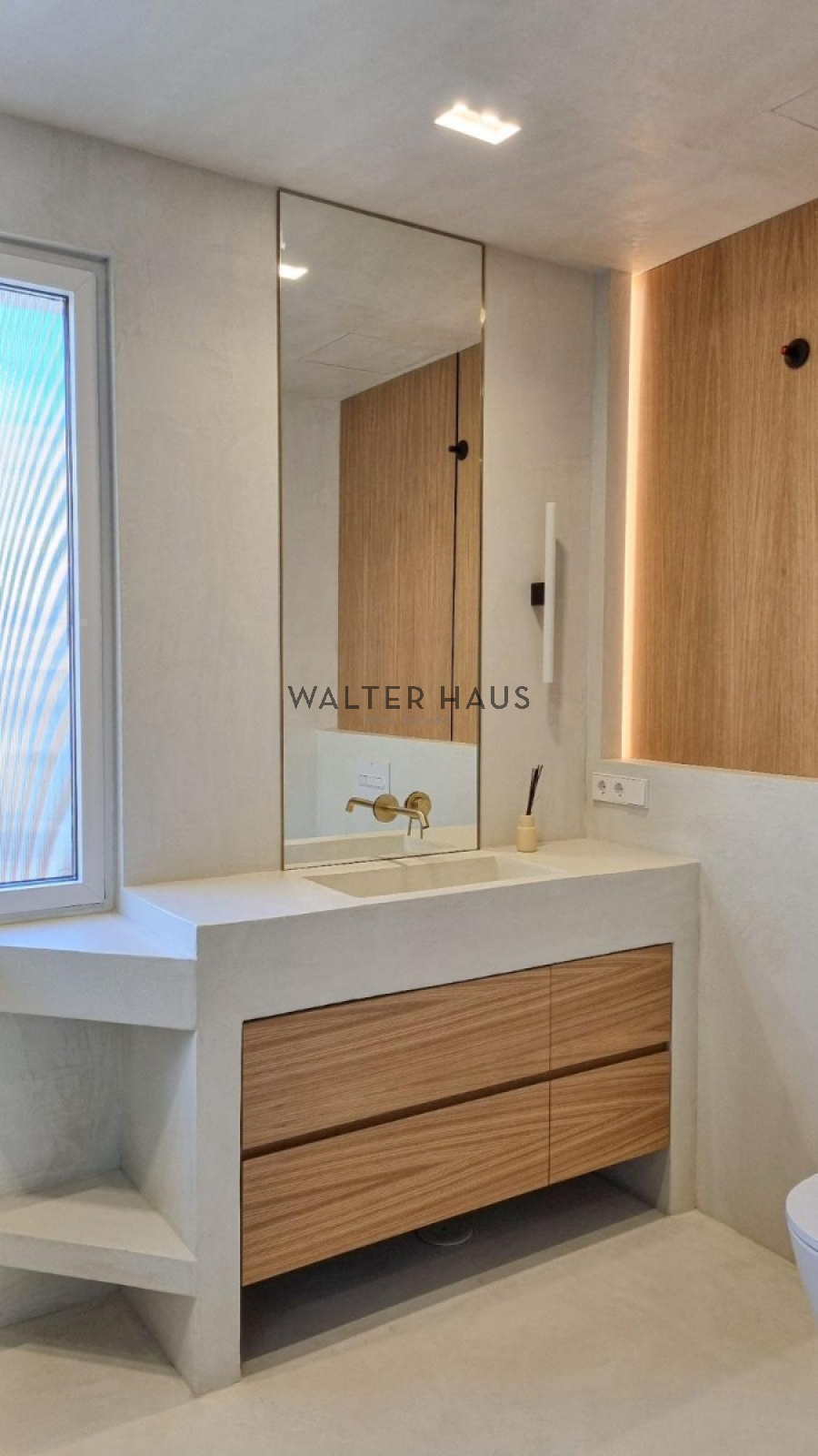 Los detalles de la vivienda reflejan un compromiso con la calidad y el bienestar. Destacan sus espacios amplios y extraordinariamente luminosos, una característica conseguida gracias a la instalación de grandes ventanales y un sistema de iluminación cálida y muy cuidada. Para garantizar el confort durante todas las estaciones, se ha implementado un moderno sistema de climatización por suelo radiante/refrescante y aire acondicionado por conductos. La sensación de tranquilidad y privacidad está reforzada por un excelente aislamiento acústico. Los acabados en madera de roble natural y piedra de alta calidad confieren una elegancia atemporal, y la practicidad se ve reflejada en soluciones como una despensa independiente y un área de lavadero.