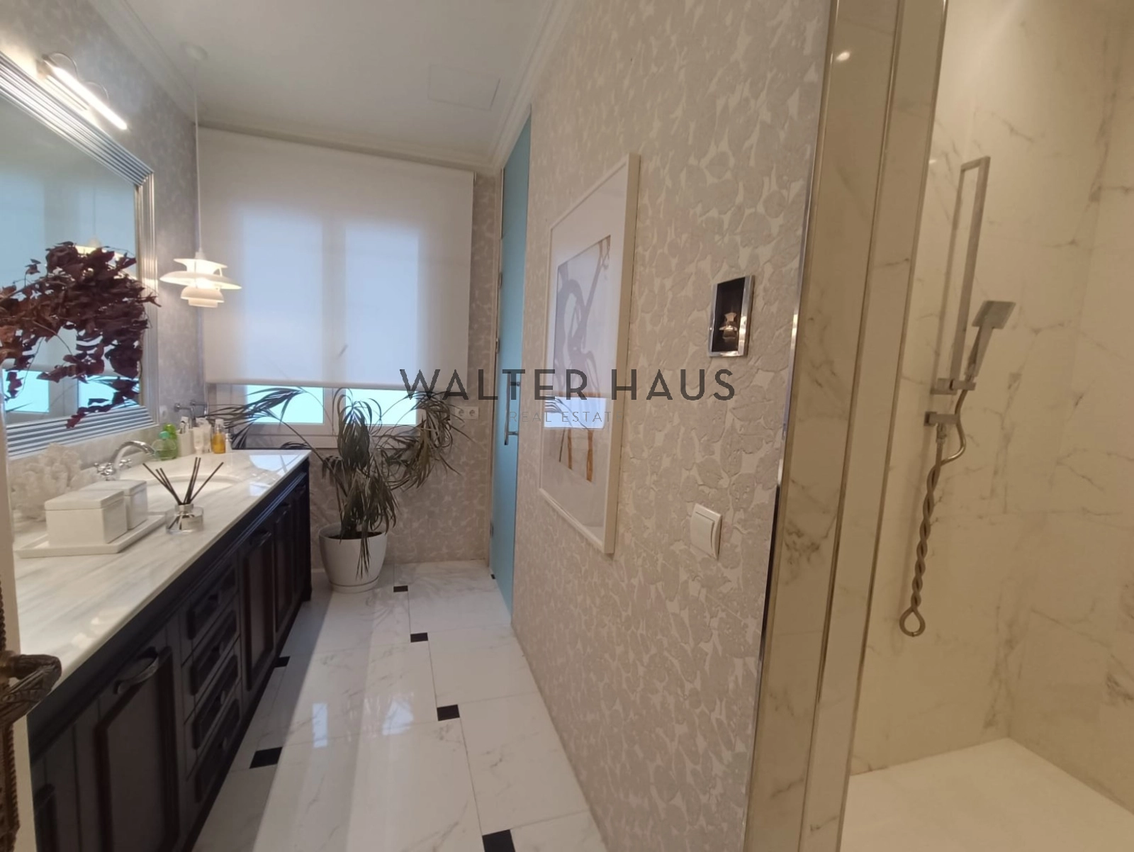 El inmueble ha sido sometido a una reforma integral con un proyecto de interiorismo de diseño contemporáneo, elevando la vivienda a un estándar de alto nivel. La distribución se compone de un espacioso salón principal, tres dormitorios bien proporcionados, dos baños completos con acabados de primera calidad, además de un aseo de cortesía para invitados. La cocina independiente es un verdadero punto focal, equipada con electrodomésticos de alta gama y realzada por una elegante isla central que funciona también como comedor. Los acabados son de terminaciones excelentes, destacando los lujosos suelos de mármol y la carpintería de diseño, además de contar con calefacción por suelo radiante en toda la vivienda para un máximo confort térmico.
