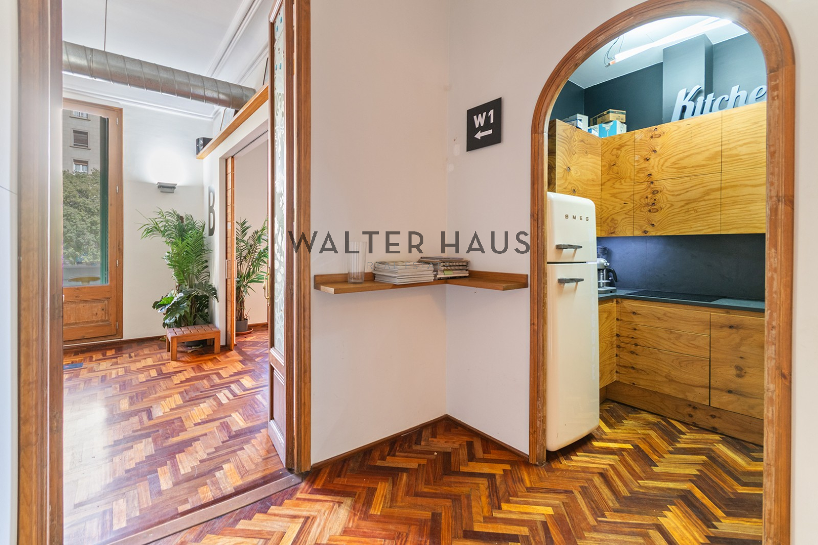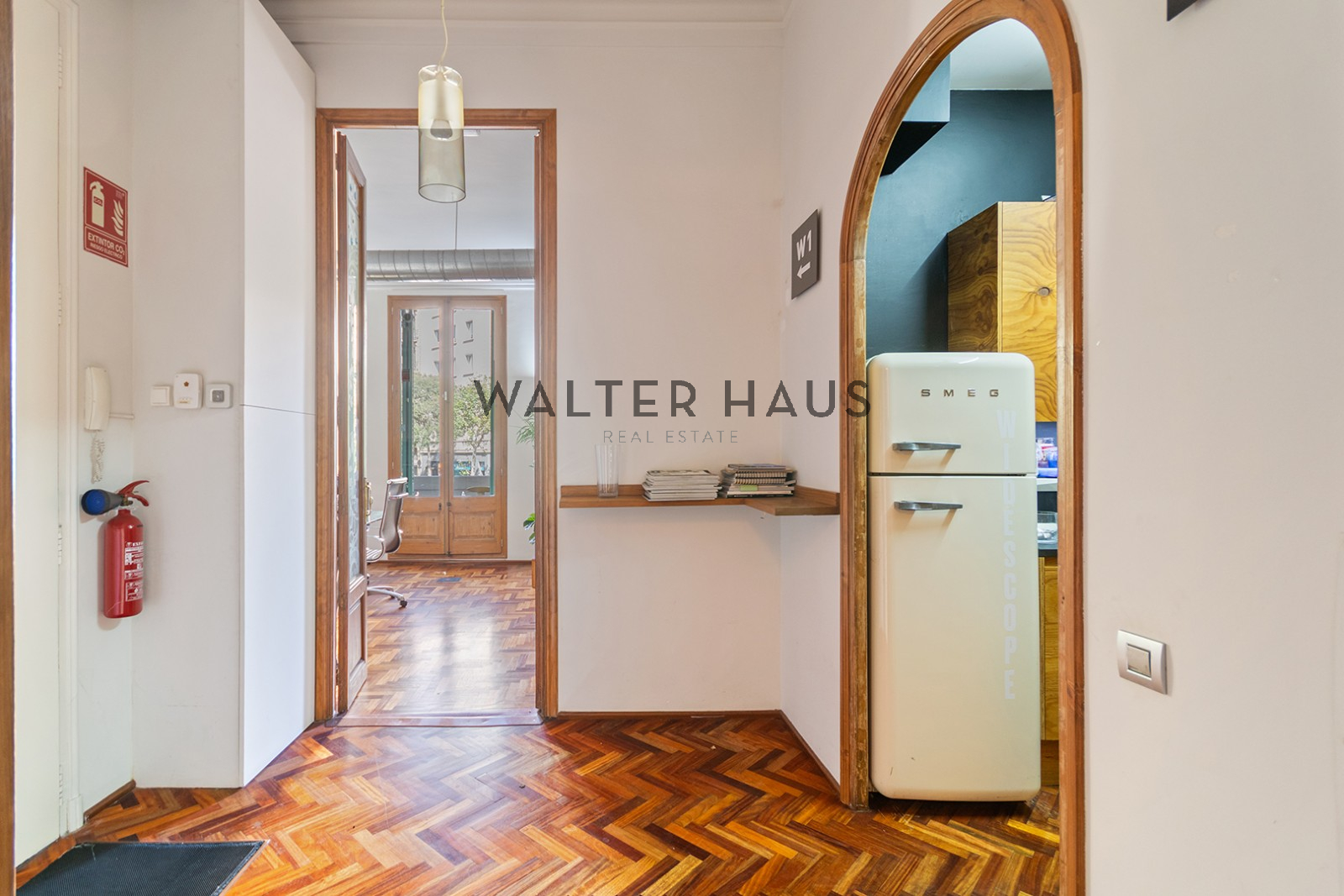 Exclusivo piso esquinero de 179 m² construidos, de los cuales 158 m² de propiedad y 21 m² de elementos comunes, en una finca regia. La vivienda destaca por su distribución exterior, que permite una excelente entrada de luz natural gracias a sus múltiples balcones y tribuna. Conserva detalles arquitectónicos originales como suelos hidráulicos, techos con volta catalana de una altura de 3,50 metros y puertas con cristales al ácido, que aportan carácter y autenticidad a cada estancia.