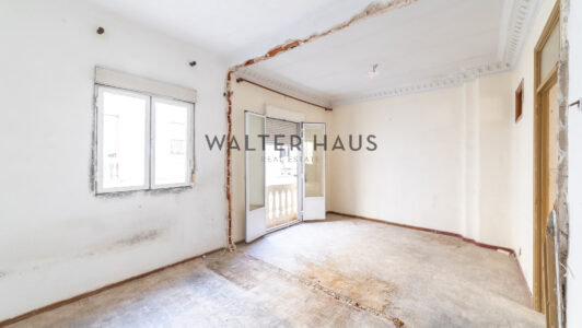 Elegante y con mucho encanto esta acogedora vivienda de 74 m2, con techos altos de 3,20 m2, consta de una salón comedor todo diáfano y espacioso, con dos ambientes bien diferenciados: por un lado la zona del salón con muebles cómodos y zona de Tv; y en otro ambiente está la zona del comedor, con una mesa circular con capacidad para situar hasta a seis comensales. Destaca la presencia de 3 amplios balcones con vistas exteriores en orientación Sur, aportando una buena entrada de luz natural a todo el espacio. Cercano, se sitúa una pequeña zona de estudio, con un mueble clásico de época, a juego con la decoración.