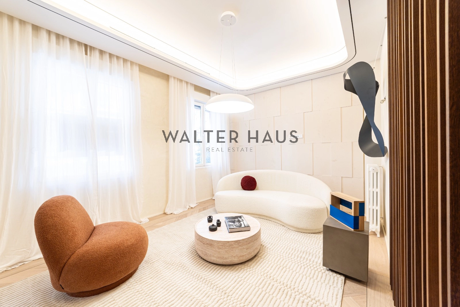 La inmobiliaria Walter Haus les presenta en EXCLUSIVA esta vivienda de 286 m², totalmente reformada, a estrenar, situada en un edificio representativo de 1953, combina elegancia clásica y modernidad. La propiedad destaca por sus techos altos, suelos de madera originales y amplias ventanas que ofrecen abundante luz natural.