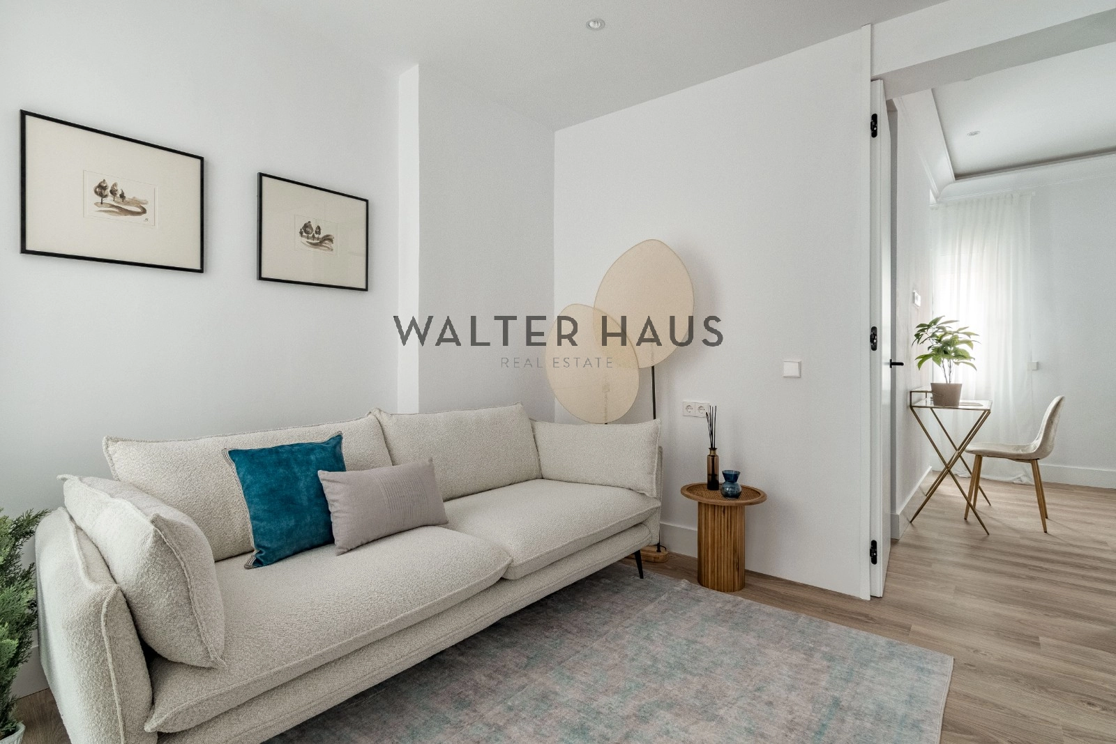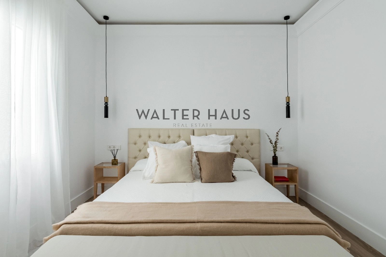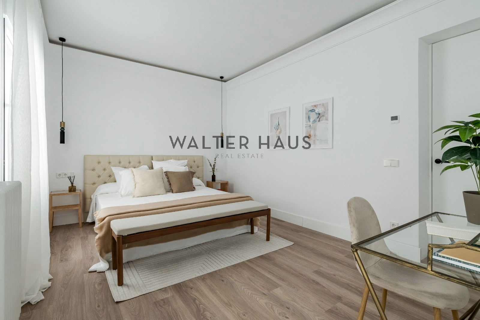 El interior de la vivienda deslumbra por su espectacular luz natural, potenciada por una envidiable orientación sur y sus techos altos. El gran salón es el corazón de la casa, destacando por sus dos balcones que aportan amplitud y luminosidad. La cocina está completamente equipada con electrodomésticos de alta gama, incluyendo una isla central y soluciones de gran capacidad de almacenaje, además de una práctica vinoteca. El área de descanso se compone de dos confortables dormitorios, ambos con baño incorporado, y unos de ellos con su propio vestidor. La propiedad se completa con un aseo de visitas con un gran ventanal, un espacio versátil ideal para despacho, sala de televisión o para recibir invitados, además de puertas a medida de suelo a techo, aire acondicionado y calefacción individual.
