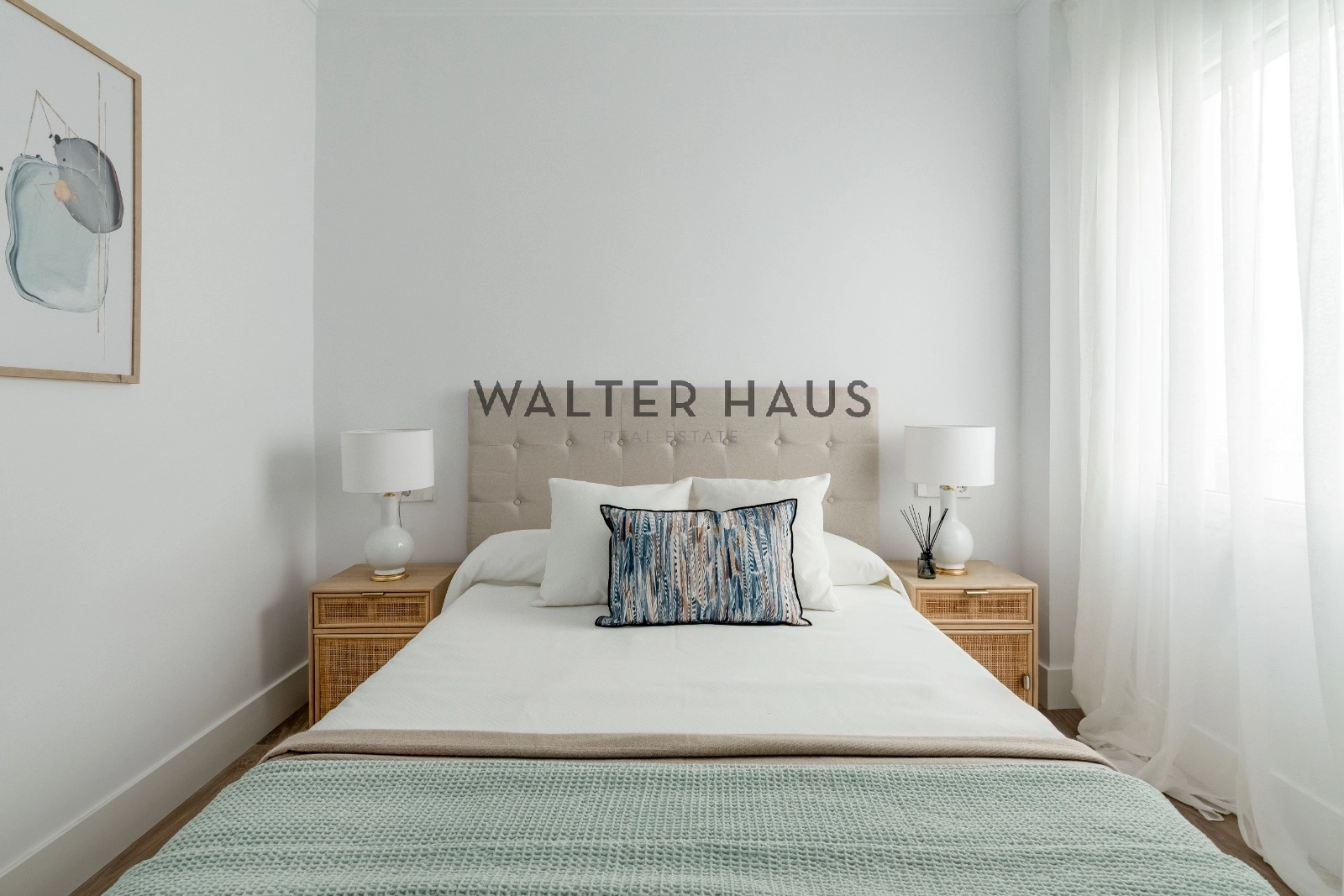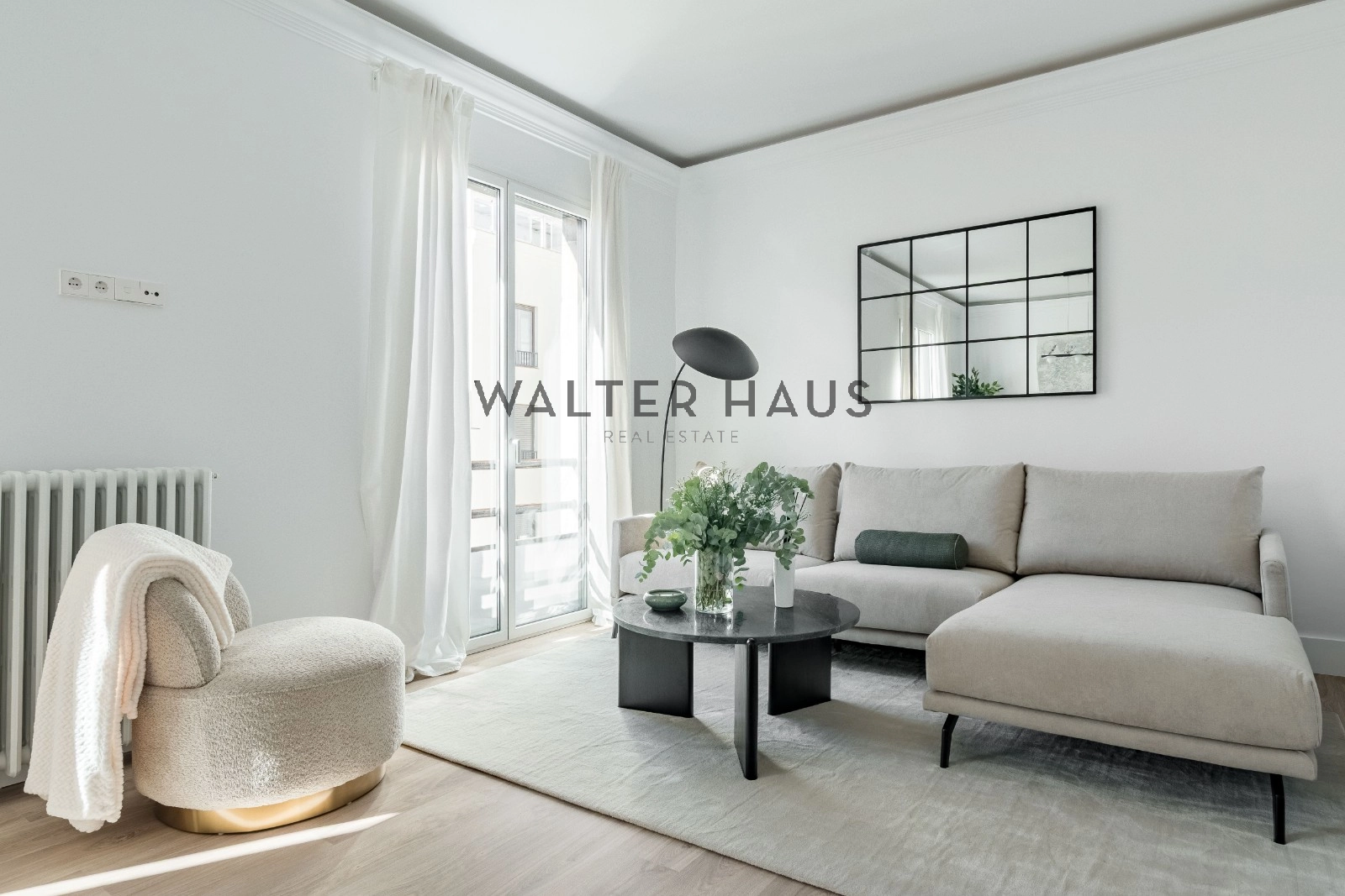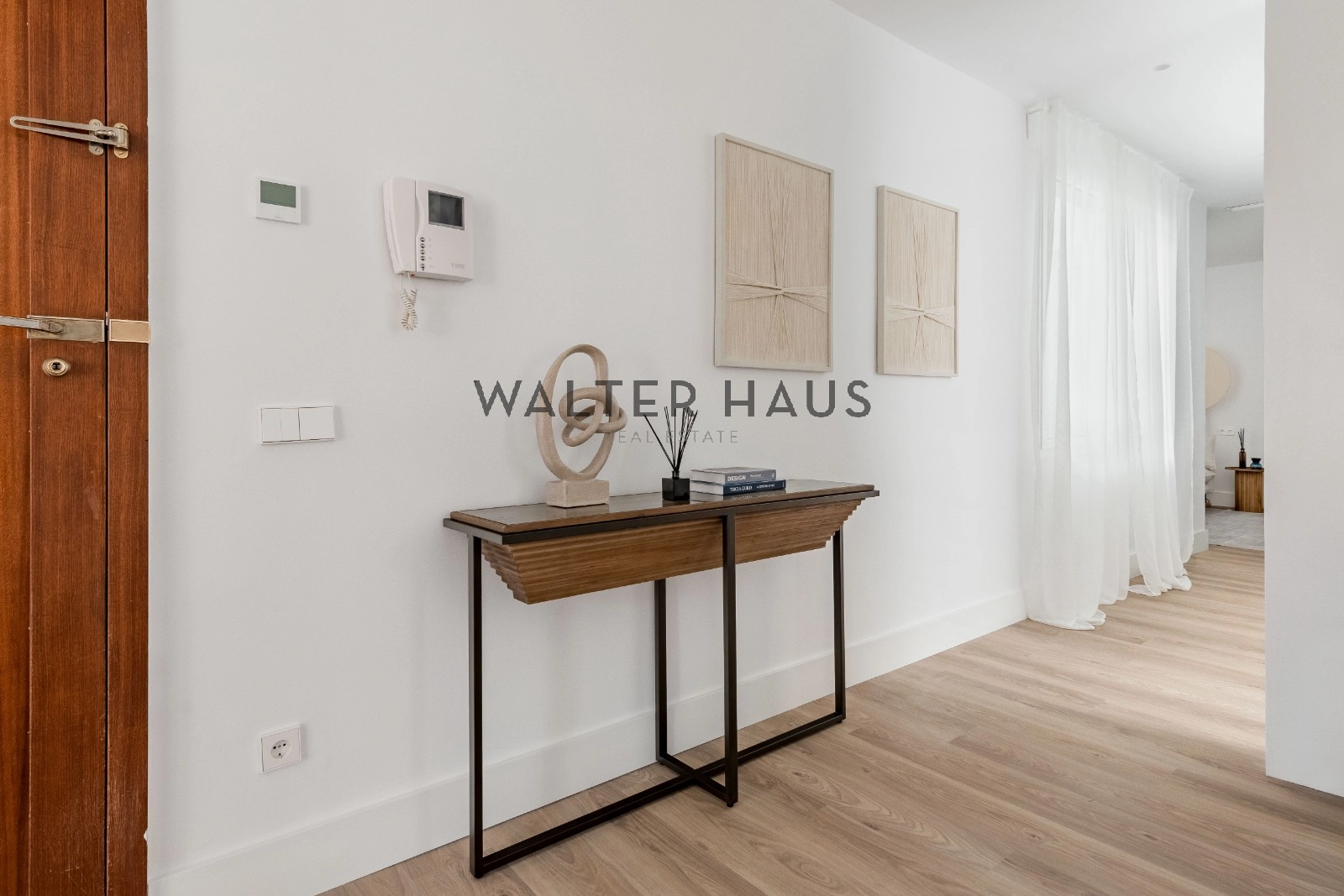 El interior de la vivienda deslumbra por su espectacular luz natural, potenciada por una envidiable orientación sur y sus techos altos. El gran salón es el corazón de la casa, destacando por sus dos balcones que aportan amplitud y luminosidad. La cocina está completamente equipada con electrodomésticos de alta gama, incluyendo una isla central y soluciones de gran capacidad de almacenaje, además de una práctica vinoteca. El área de descanso se compone de dos confortables dormitorios, ambos con baño incorporado, y unos de ellos con su propio vestidor. La propiedad se completa con un aseo de visitas con un gran ventanal, un espacio versátil ideal para despacho, sala de televisión o para recibir invitados, además de puertas a medida de suelo a techo, aire acondicionado y calefacción individual.