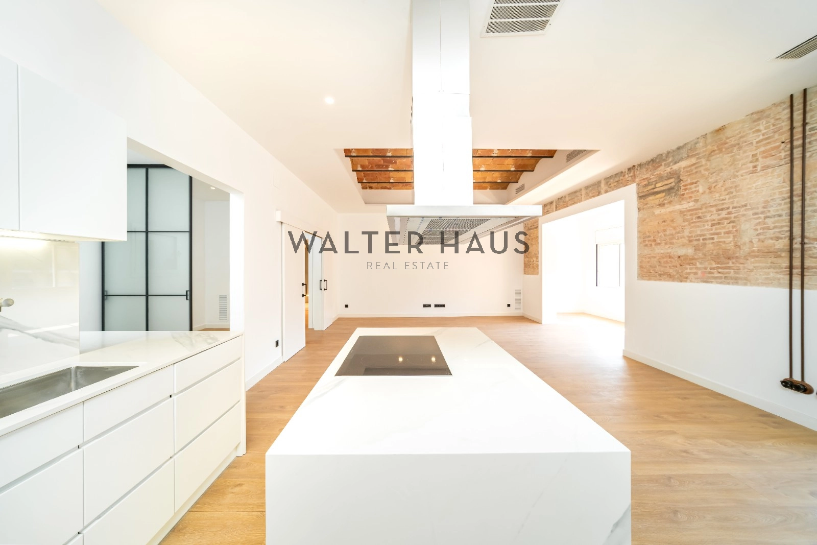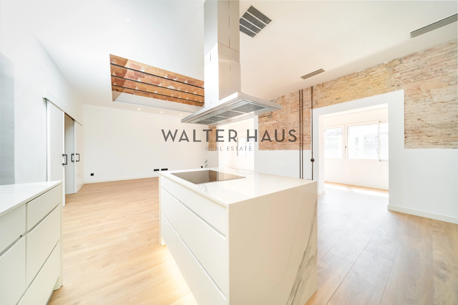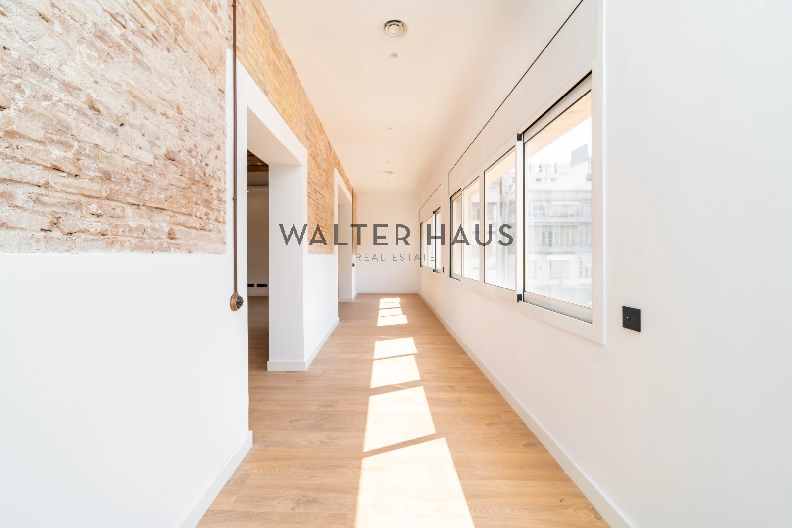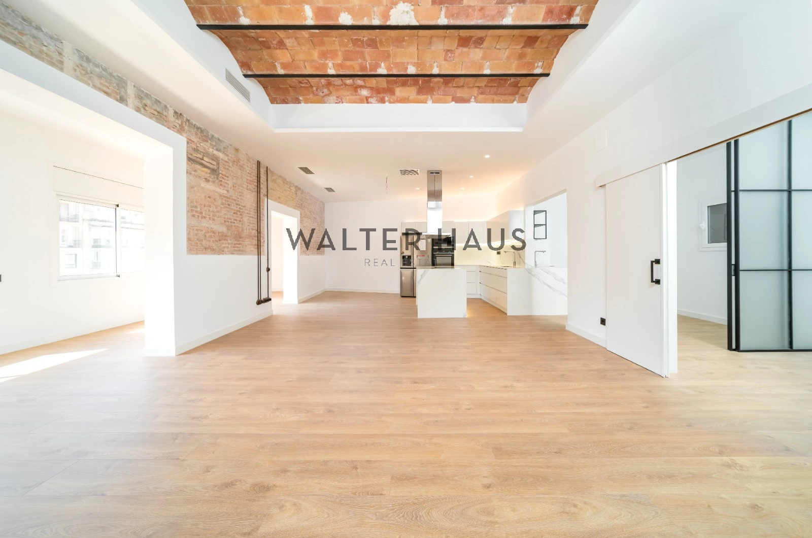 Exclusivo piso de 248 m² construidos se sitúa en la tercera planta real de una finca clásica con ascensor, servicio de conserjería y acceso a una terraza comunitaria. La propiedad destaca por su amplitud, luz natural y elementos originales recuperados, como la volta catalana en los techos y paredes de ladrillo visto, que aportan carácter y autenticidad a cada espacio.