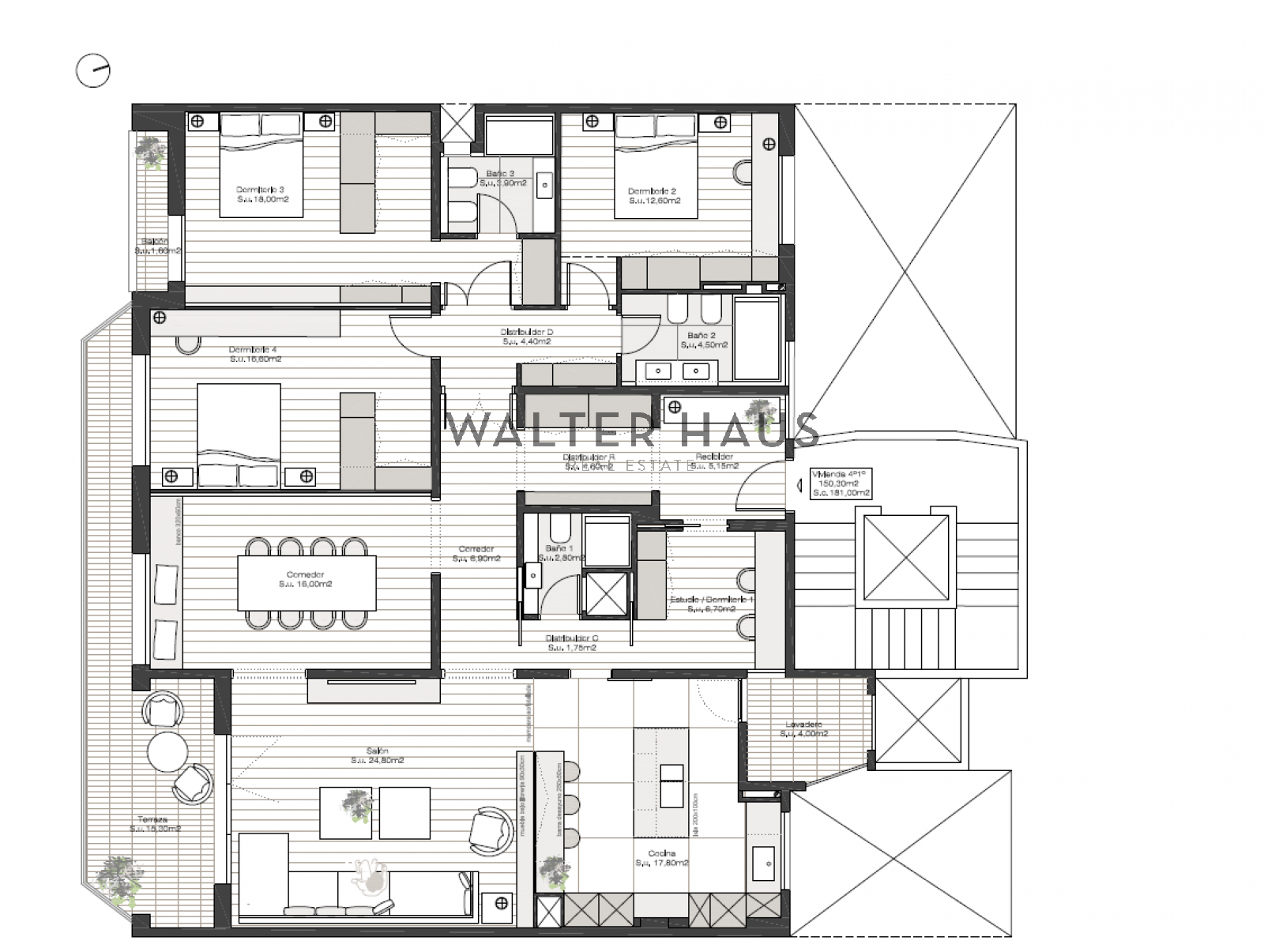 La propiedad cuenta con cuatro amplias habitaciones, dos de ellas en suite, y tres baños completos diseñados con acabados de alto nivel. El salón-comedor, de concepto abierto, se integra con una cocina moderna y totalmente equipada con electrodomésticos de última generación. La vivienda se caracteriza por su excelente entrada de luz natural, y su terraza soleada ofrece un espacio perfecto para disfrutar durante todo el año. Además, dispone de calefacción central, carpintería de alta calidad, sistema de climatización por conductos y armarios empotrados en todas las estancias. Además, la vivienda dispone de un trastero y una plaza de parking en la misma finca incluida en el precio.