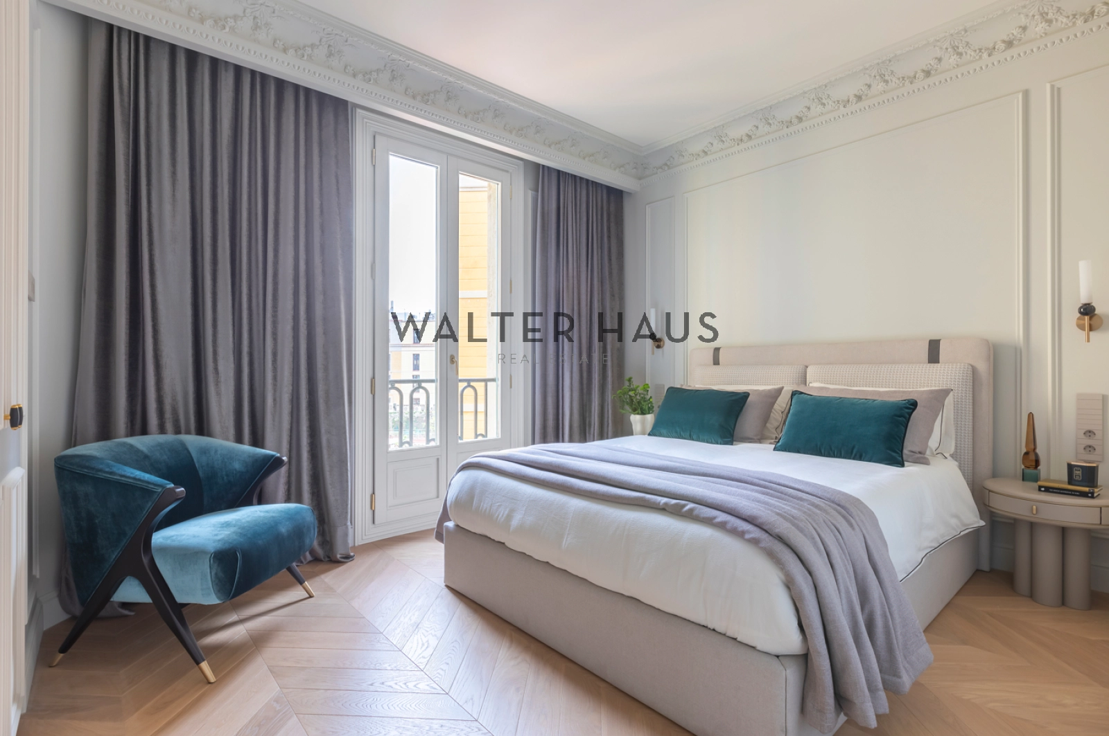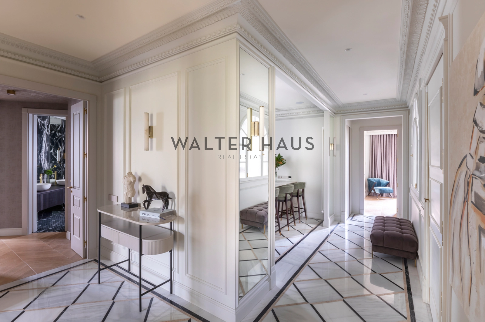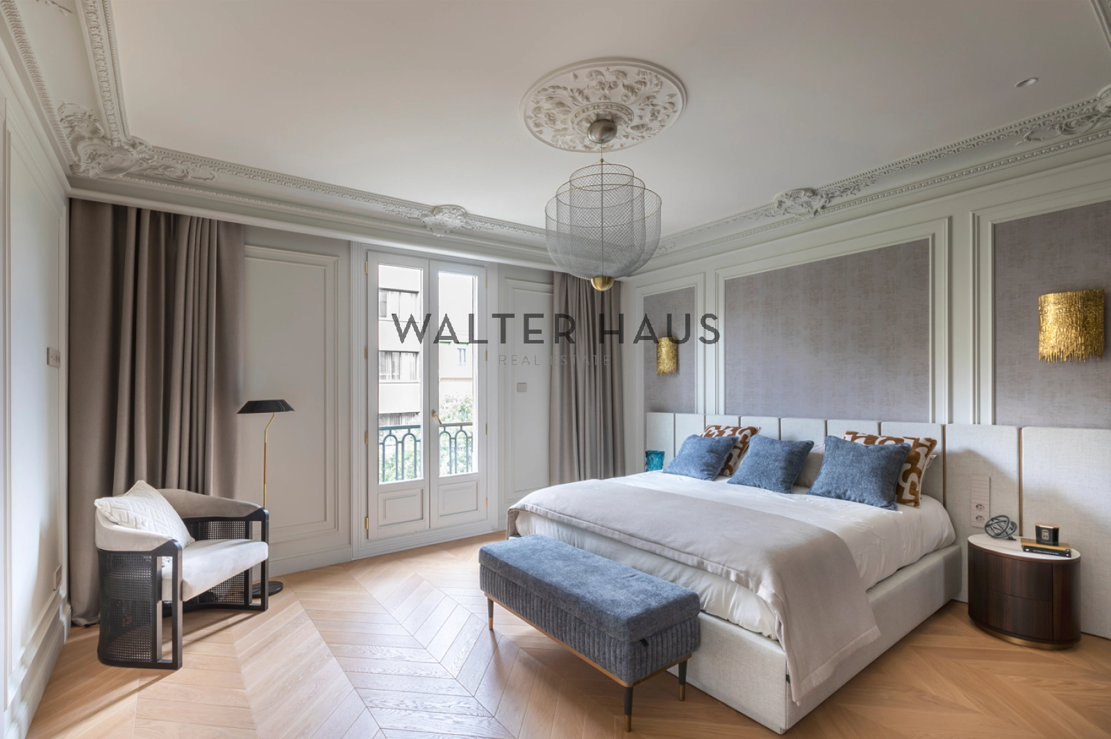 Ubicada en el cuarto piso de un elegante edificio de época de 1900, esta vivienda de lujo combina la esencia clásica con el confort contemporáneo. Con una superficie total de 201 m² construidos, ofrece amplitud, luminosidad y un diseño cuidadosamente renovado. Su distribución incluye un espacioso recibidor con suelo de mármol, un gran salón-comedor con vistas despejadas, cuatro habitaciones dobles exteriores y tres baños completos, lo que la convierte en un hogar ideal para quienes buscan calidad y estilo en cada detalle.