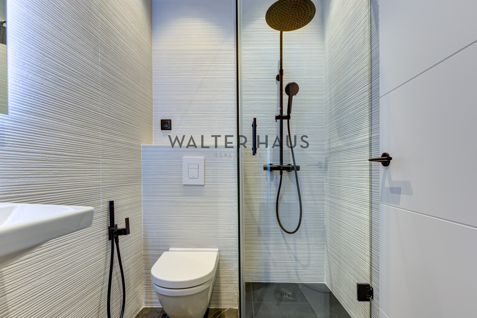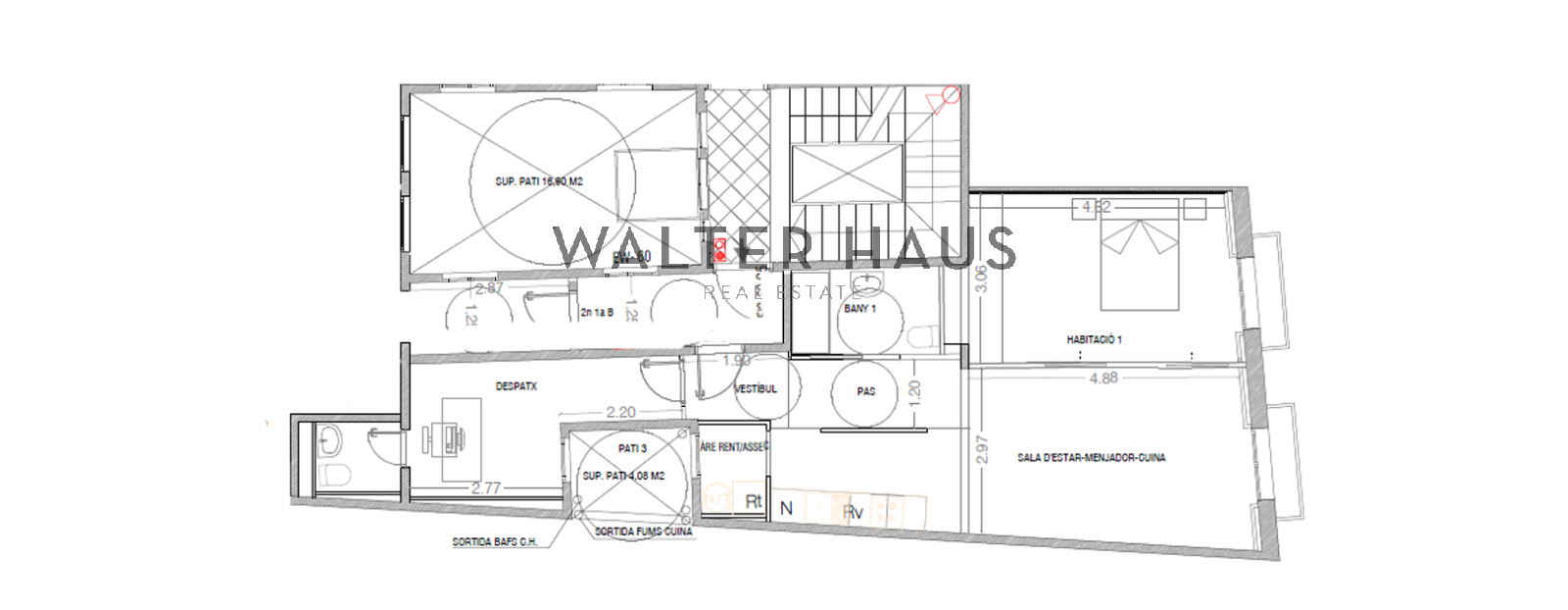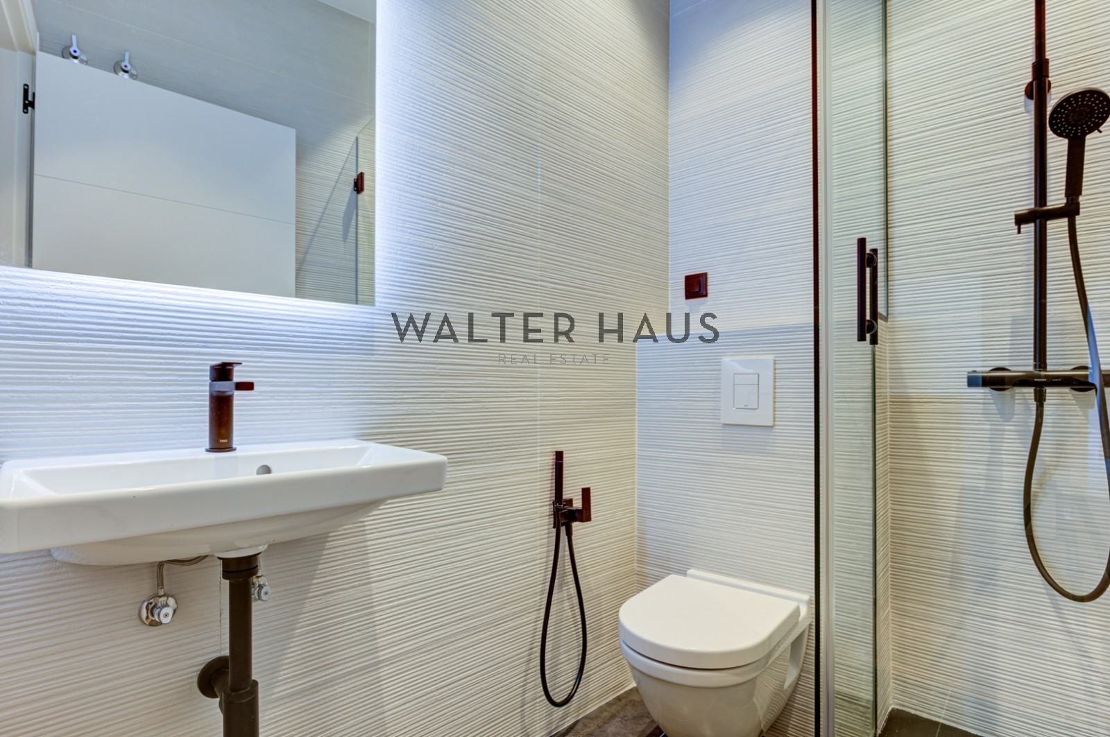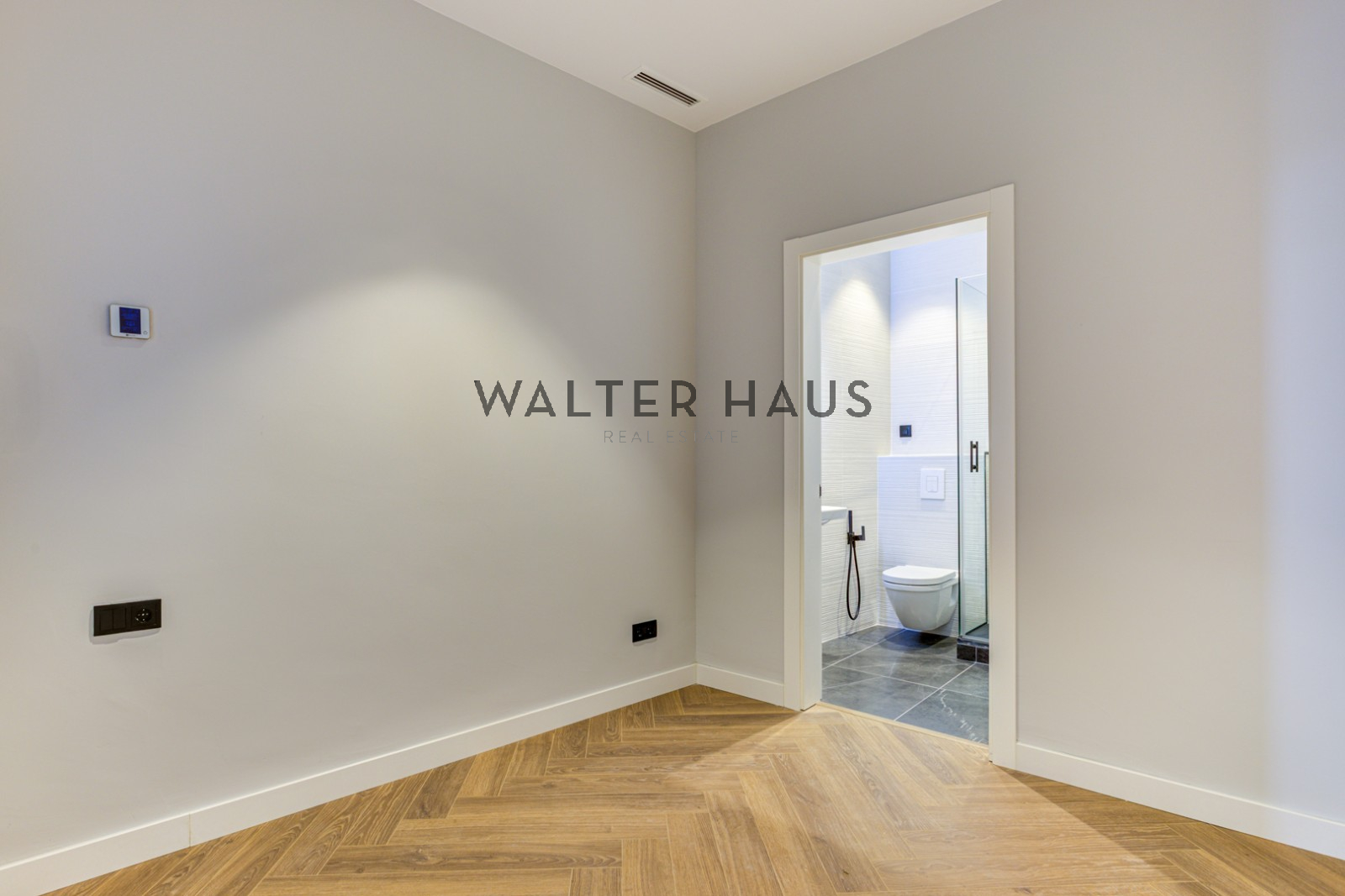La vivienda cuenta con una sala de estar de planta abierta de unos 24 m² que integra la cocina, el comedor y el salón en un único espacio fluido. La cocina de diseño está equipada con electrodomésticos de alta gama y encimeras de materiales nobles. El dormitorio principal, de aproximadamente 16 m², dispone de un baño en suite de líneas modernas y elegantes, mientras que el segundo dormitorio, de unos 10 m², tiene acceso a un baño independiente. Además, el piso incluye un lavadero de 2 m² y dos balcones con vistas a las animadas calles del Eixample.