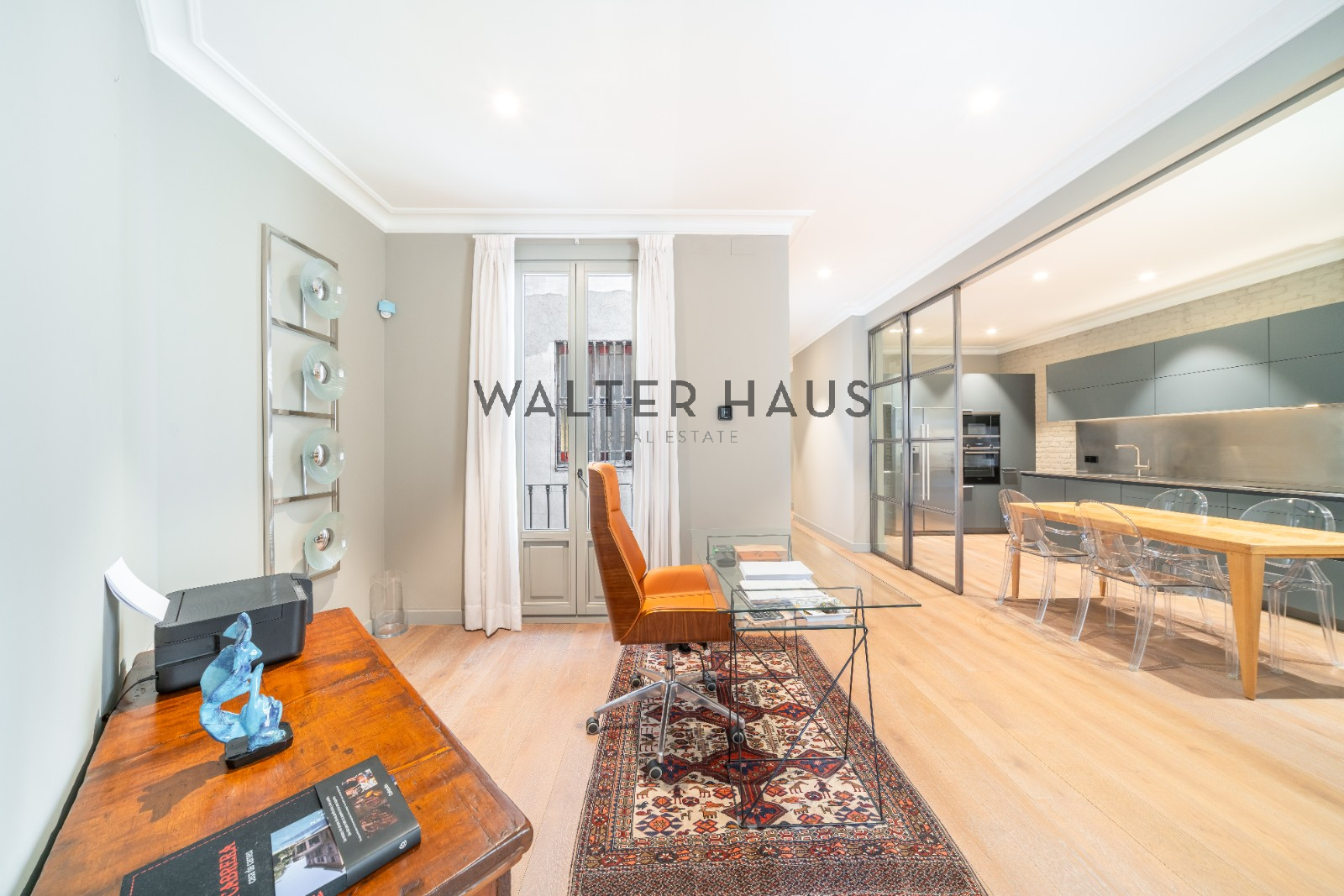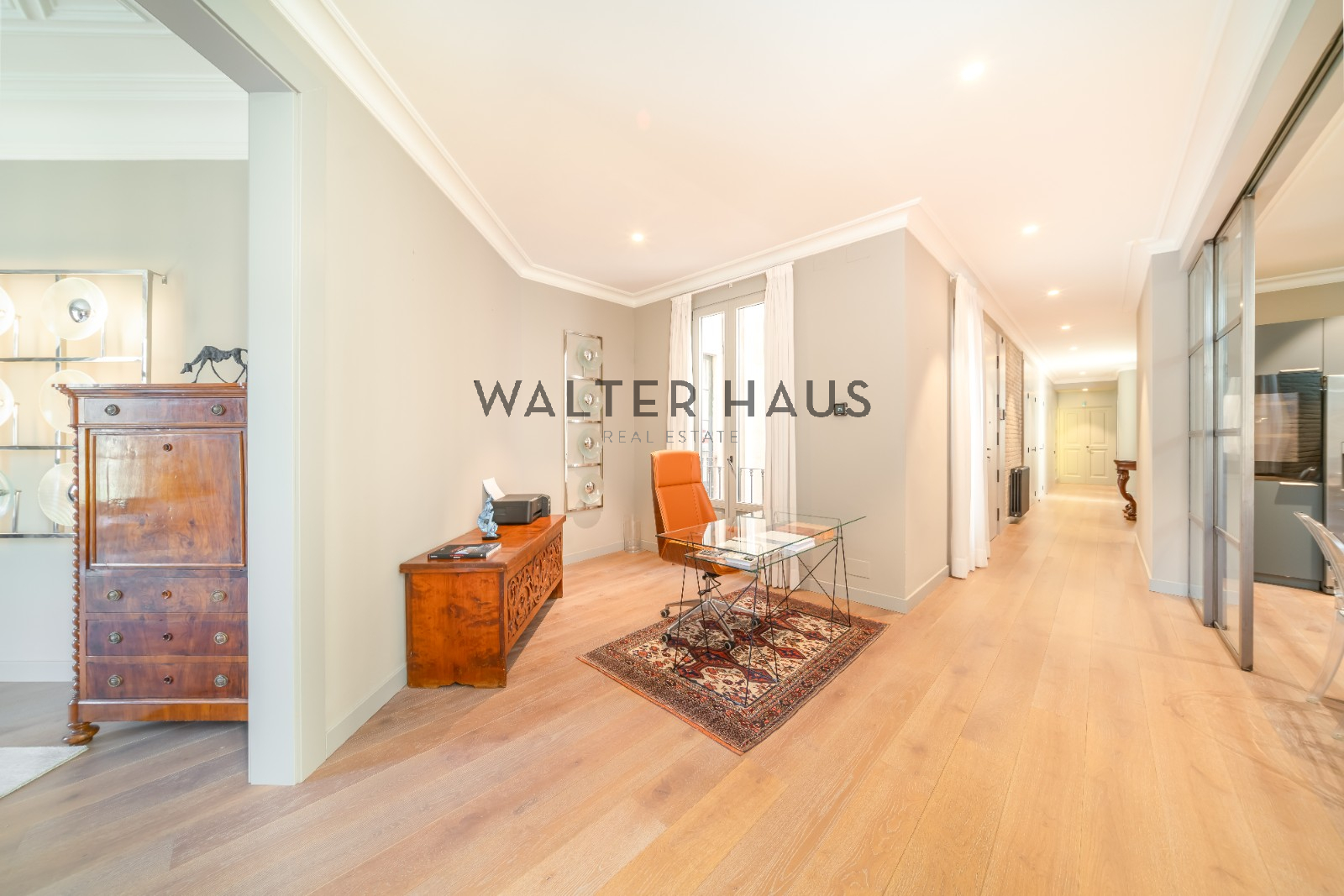 La propiedad se distribuye en una amplia zona de día con un recibidor que da acceso a una cocina semiabierta conectada a un despacho y un gran salón-comedor. Desde ahí se tiene acceso a dos balcones con vistas a Rambla de Catalunya, lo que aporta amplitud e inunda los espacios de luz natural durante todo el día. En la zona de noche dispone de tres habitaciones, dos de ellas en tipo suite con baño privado y una de ellas con un espectacular vestidor, ideal para quienes disfrutan de la privacidad. Dos de los dormitorios tienen salida directa a una agradable terraza privada de 17 m², orientada a un tranquilo patio de manzana. Adicionalmente, el inmueble dispone de un aseo de cortesía y un práctico cuarto de lavado.