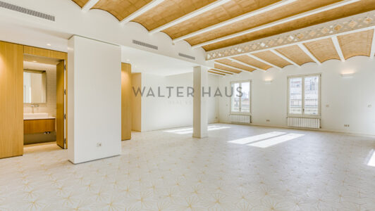 Exclusivo piso recientemente reformado de 209 m² construidos situado en la tercera planta de una finca regia esquinera. Ubicada en el corazón de l’Eixample la vivienda destaca por su amplitud, luminosidad y su prestigiosa ubicación. Su reforma integral con materiales de alta calidad ofrece un espacio moderno y confortable, sin renunciar al encanto arquitectónico original del edificio.