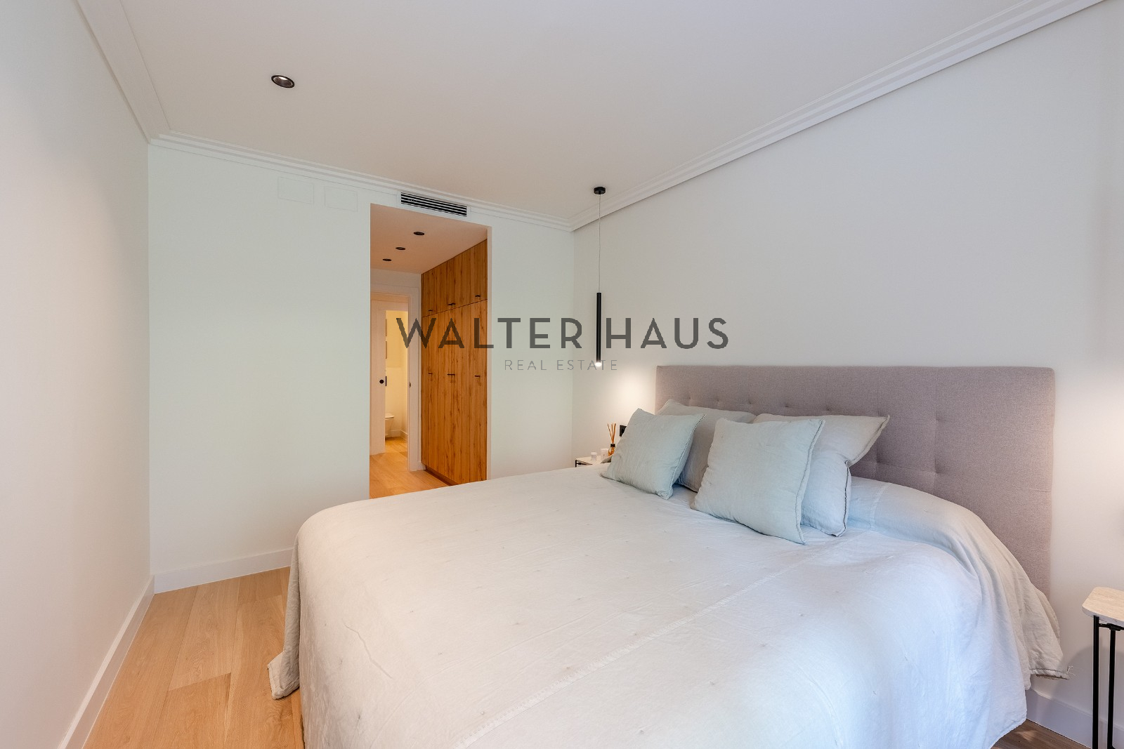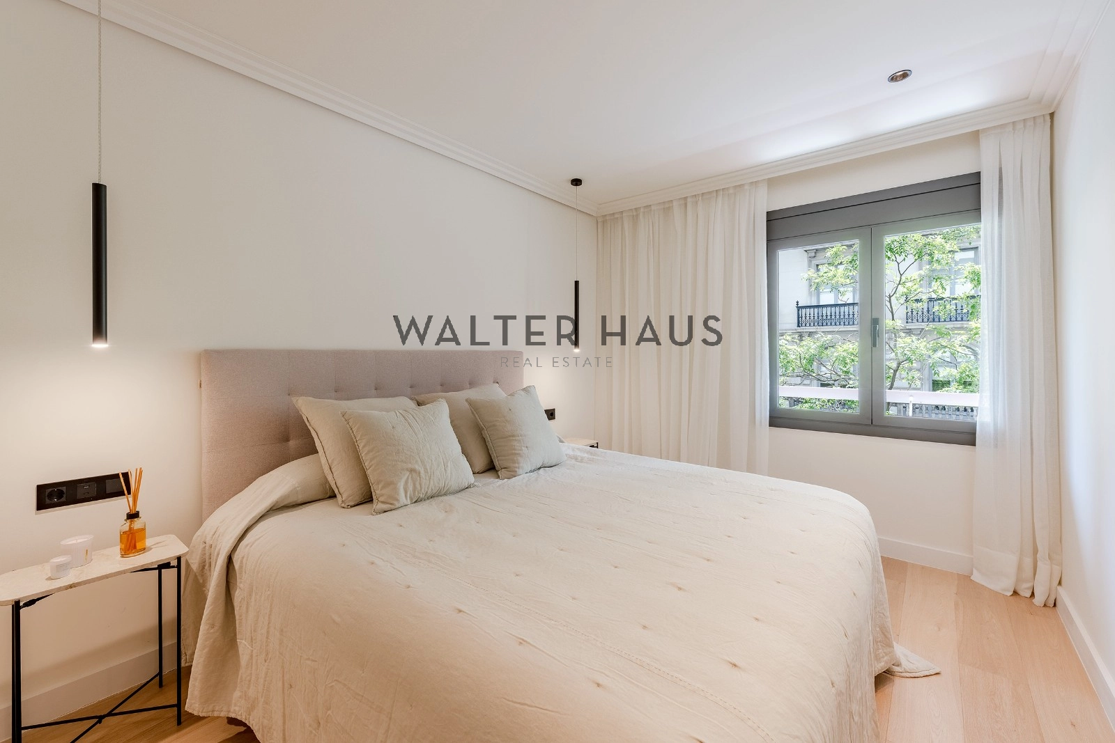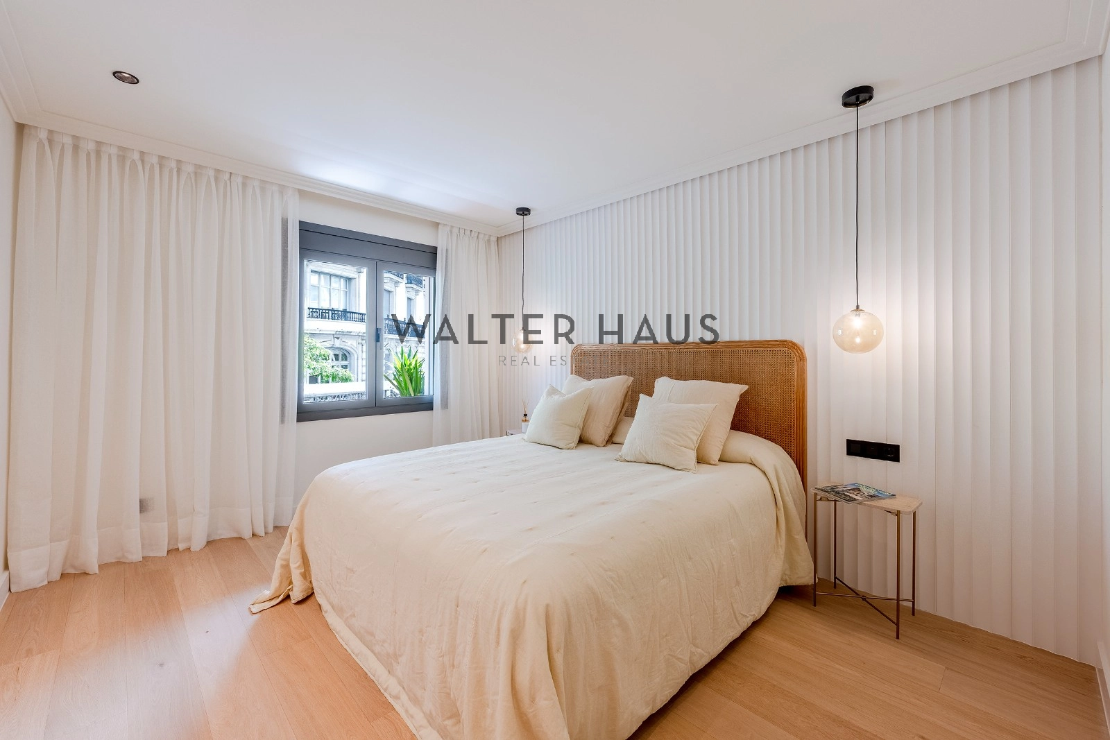 Exclusivo piso reformado, equipado y amueblado de 188 m² construidos, de los cuales 16 m² corresponden a una terraza a pie de salón. Situado en la tercera planta real de una finca esquinera. El diseño de la reforma combina amplitud, funcionalidad y estilo contemporáneo. La vivienda cuenta con una excelente distribución y ofrece una plaza de parking en la misma finca, incluida en el precio.