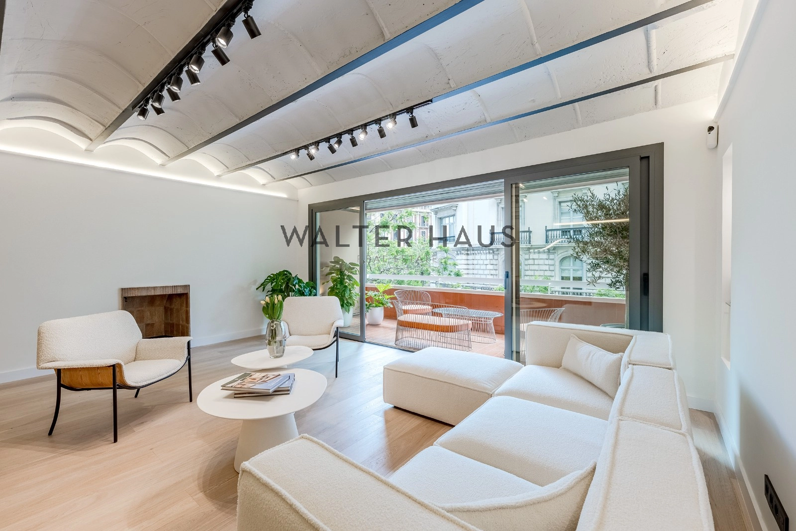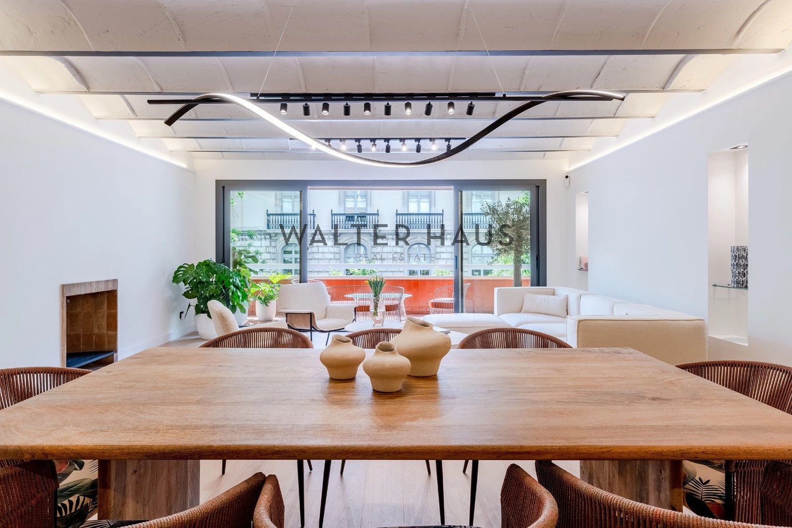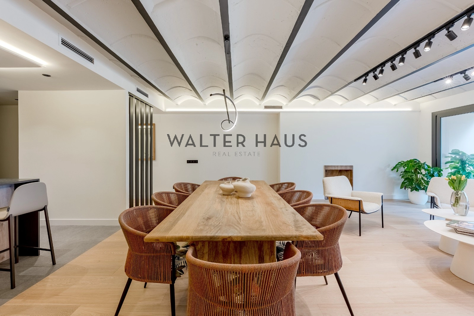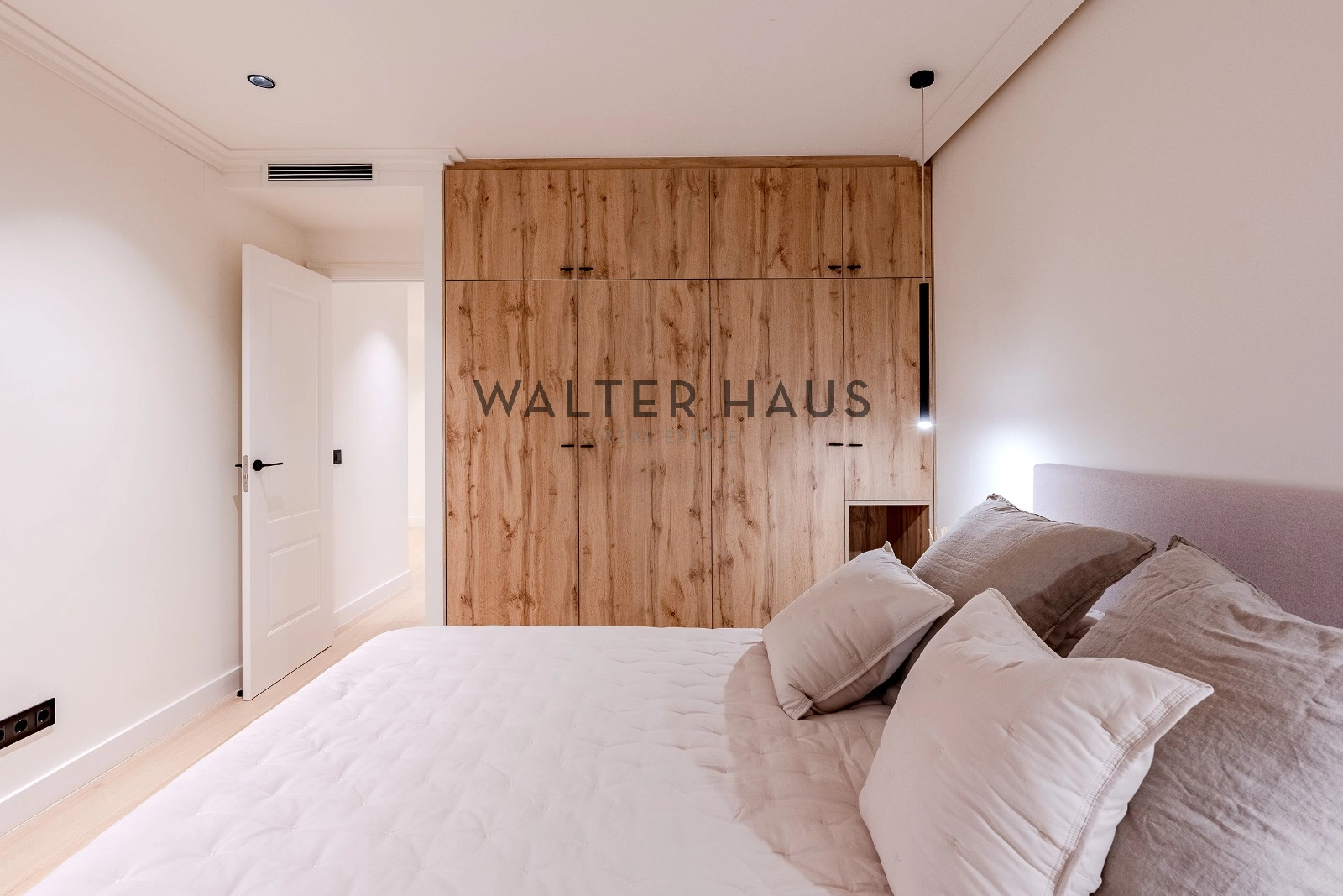 Exclusivo piso reformado, equipado y amueblado de 188 m² construidos, de los cuales 16 m² corresponden a una terraza a pie de salón. Situado en la tercera planta real de una finca esquinera. El diseño de la reforma combina amplitud, funcionalidad y estilo contemporáneo. La vivienda cuenta con una excelente distribución y ofrece una plaza de parking en la misma finca, incluida en el precio.