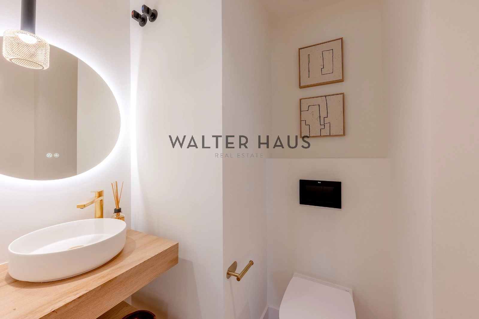 El inmueble dispone de cuatro habitaciones dobles, una de ellas en suite, dos dormitorios exteriores y dos interiores con luz natural gracias a su privilegiada orientación. La cocina está equipada con electrodomésticos Bosch de alta gama, y el salón incluye una acogedora chimenea y salida directa a una terraza de orientación sur de más de 16 m². Además, la propiedad dispone de una habitación de servicio con baño privado, entrada independiente y acceso directo a una galería. Toda la vivienda cuenta con suelos de madera natural y armarios empotrados en todas las habitaciones. Adicionalmente, se puede adquirir un parking por 25.000€