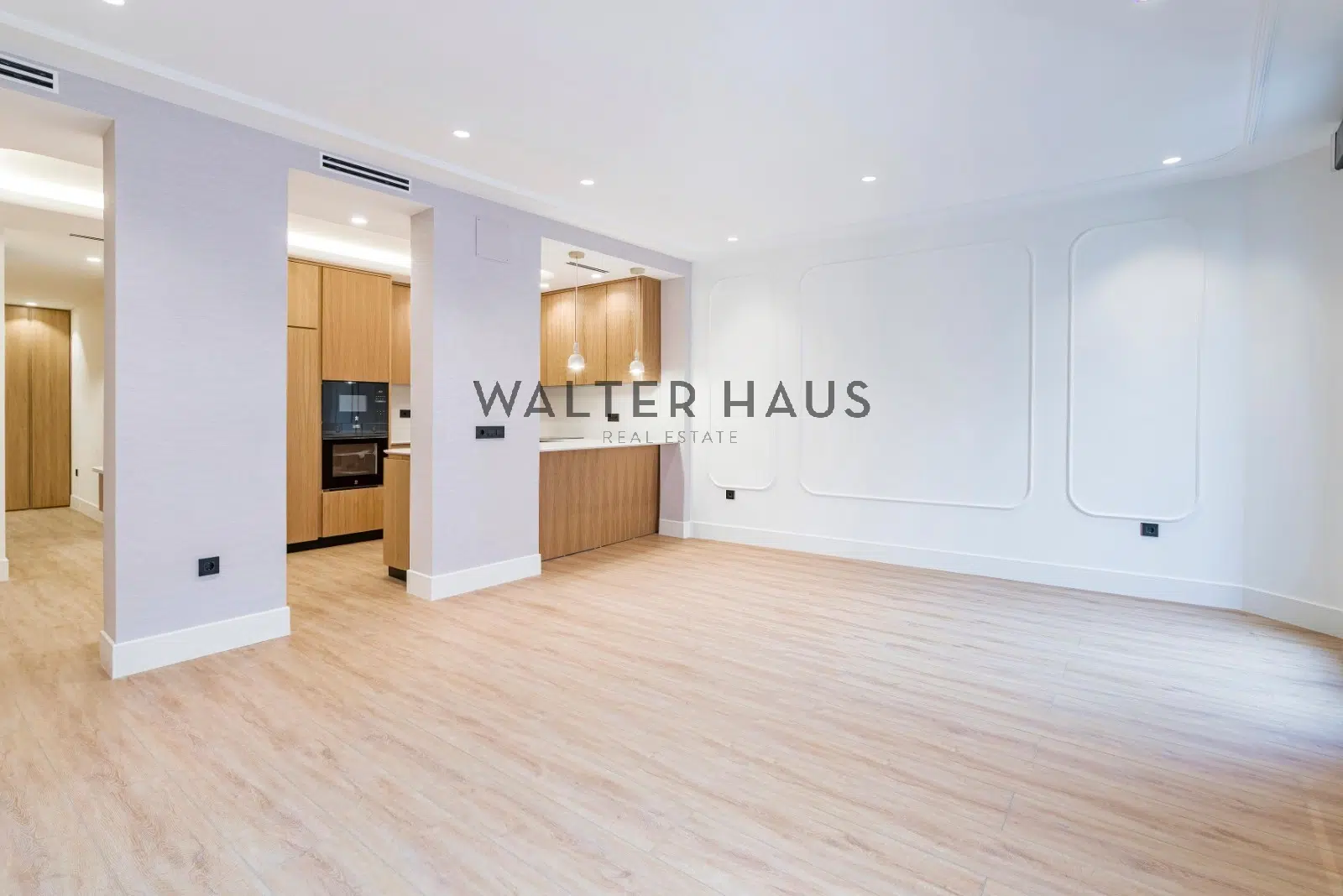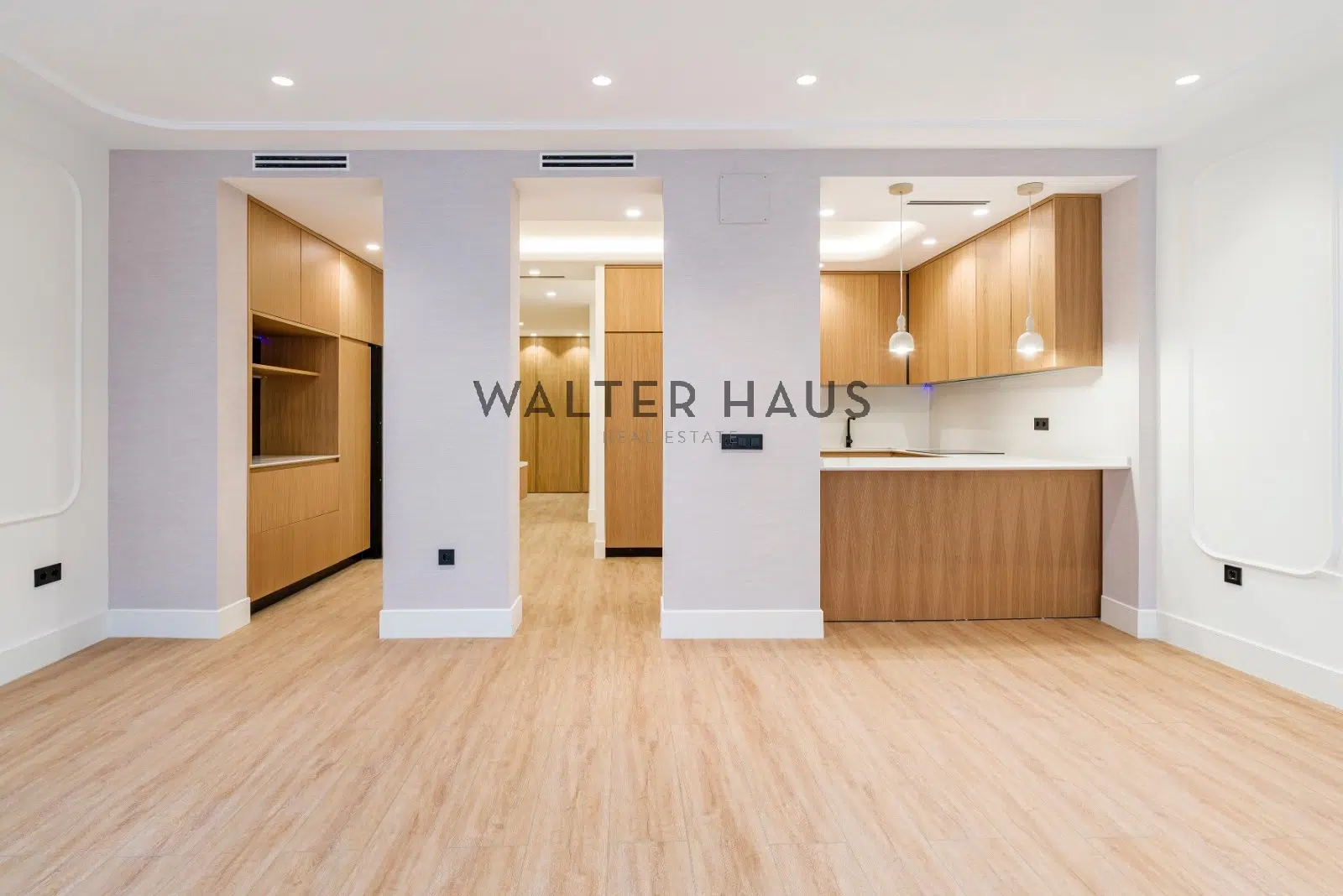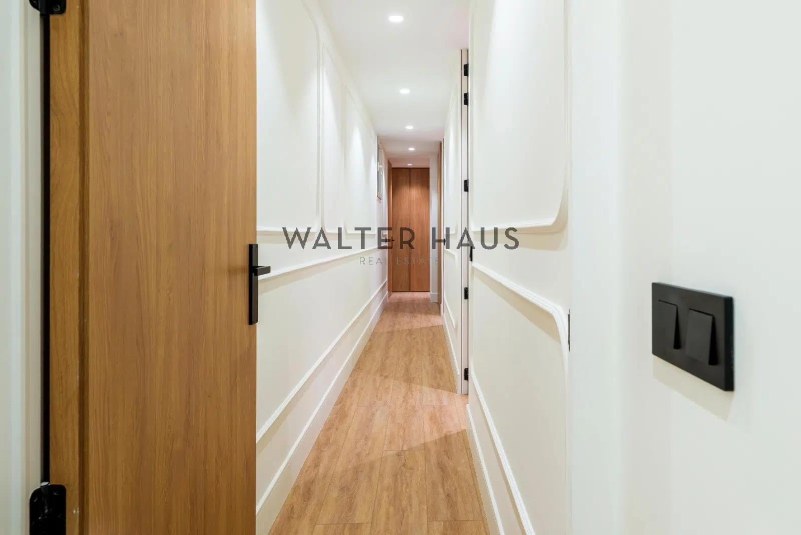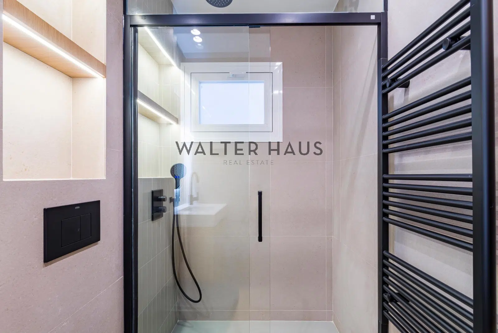 En cuanto a los detalles técnicos y constructivos, la reforma ha sido ejecutada con materiales de alta calidad. El piso dispone de tres amplias habitaciones, cada una de ellas configurada con baño en suite para asegurar la total privacidad de sus habitantes. La zona social se integra armoniosamente con una cocina de diseño moderno, completamente equipada con electrodomésticos de última generación. Los suelos de madera natural recorren toda la propiedad, aportando un carácter único y una calidez excepcional a cada estancia, mientras que el sistema de climatización por conducto garantiza una temperatura ideal en cualquier época del año.
