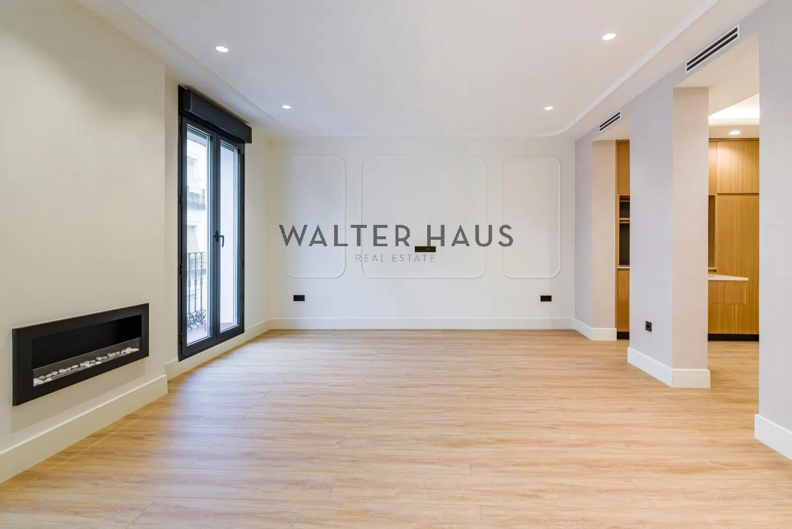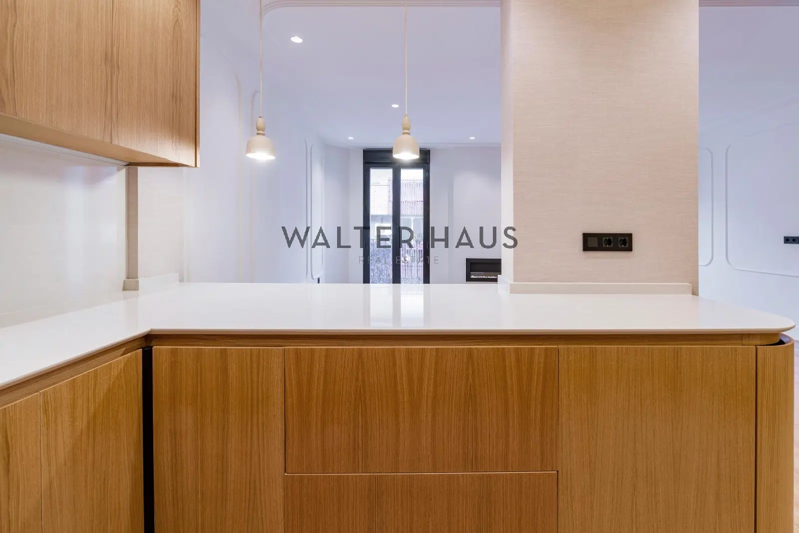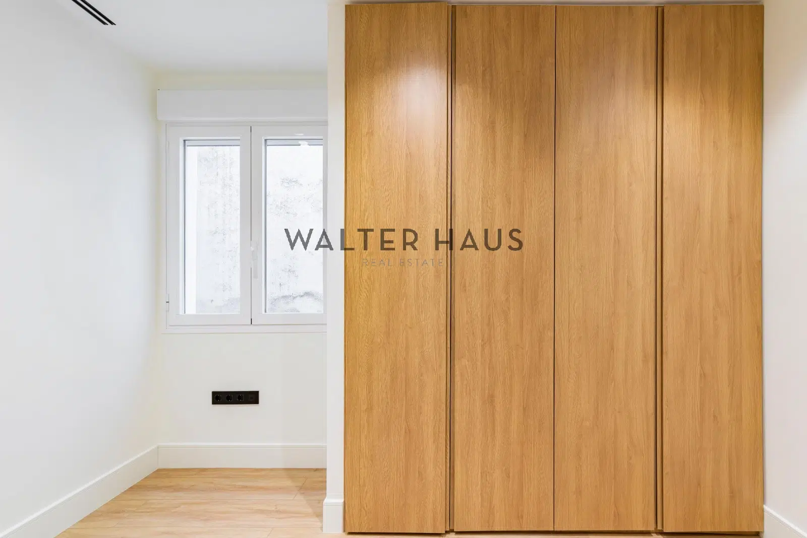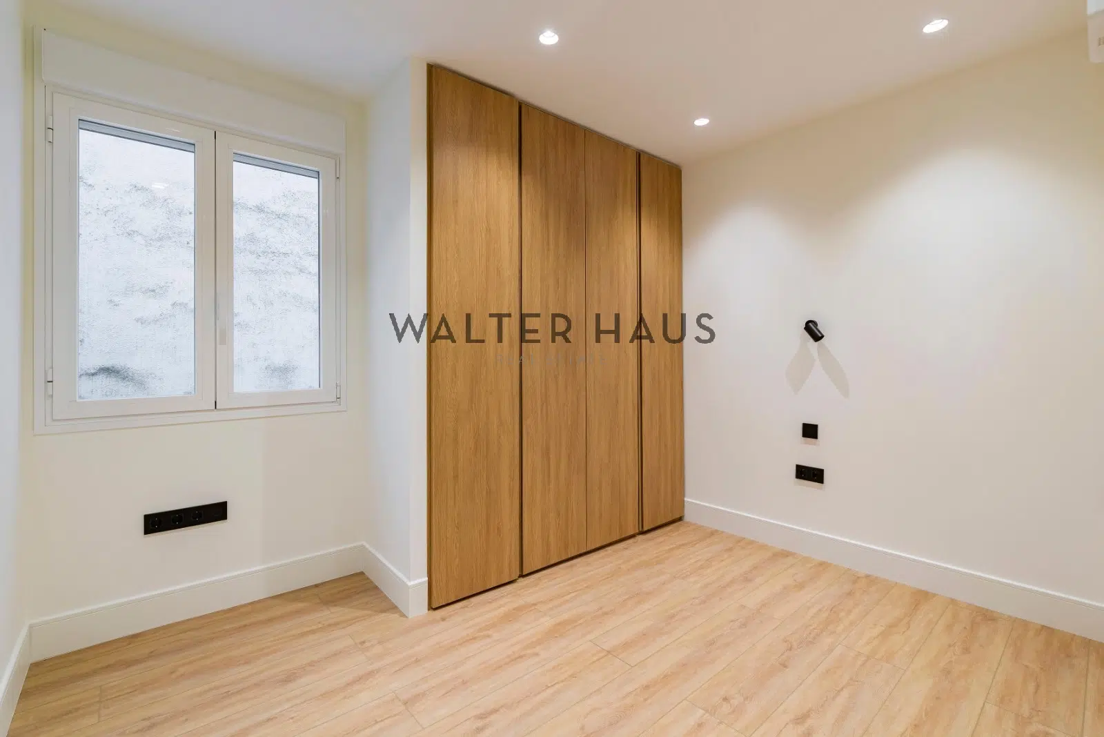 En cuanto a los detalles técnicos y constructivos, la reforma ha sido ejecutada con materiales de alta calidad. El piso dispone de tres amplias habitaciones, cada una de ellas configurada con baño en suite para asegurar la total privacidad de sus habitantes. La zona social se integra armoniosamente con una cocina de diseño moderno, completamente equipada con electrodomésticos de última generación. Los suelos de madera natural recorren toda la propiedad, aportando un carácter único y una calidez excepcional a cada estancia, mientras que el sistema de climatización por conducto garantiza una temperatura ideal en cualquier época del año.