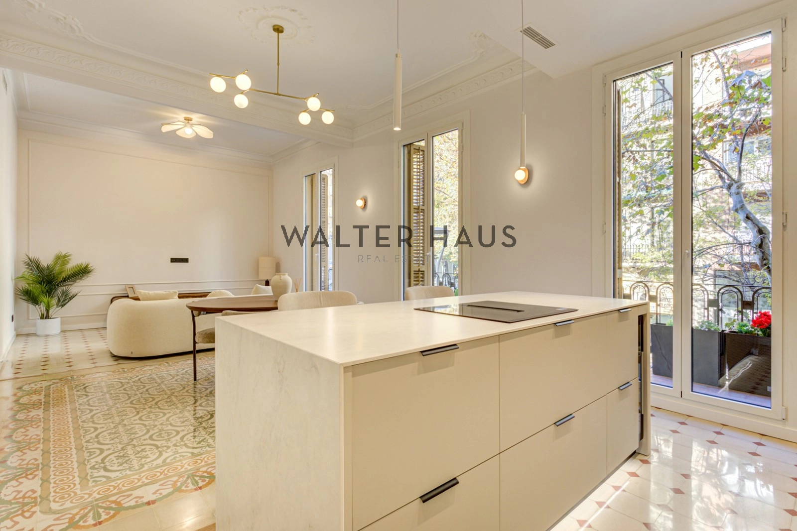Exclusivo piso de 139 m² construidos completamente reformado. Ubicado en una de las zonas más codiciadas de Barcelona, la propiedad se sitúa en una finca regia con elementos arquitectónicos originales como suelos hidráulicos y molduras decorativas en techos altos que aportan elegancia y personalidad al conjunto.