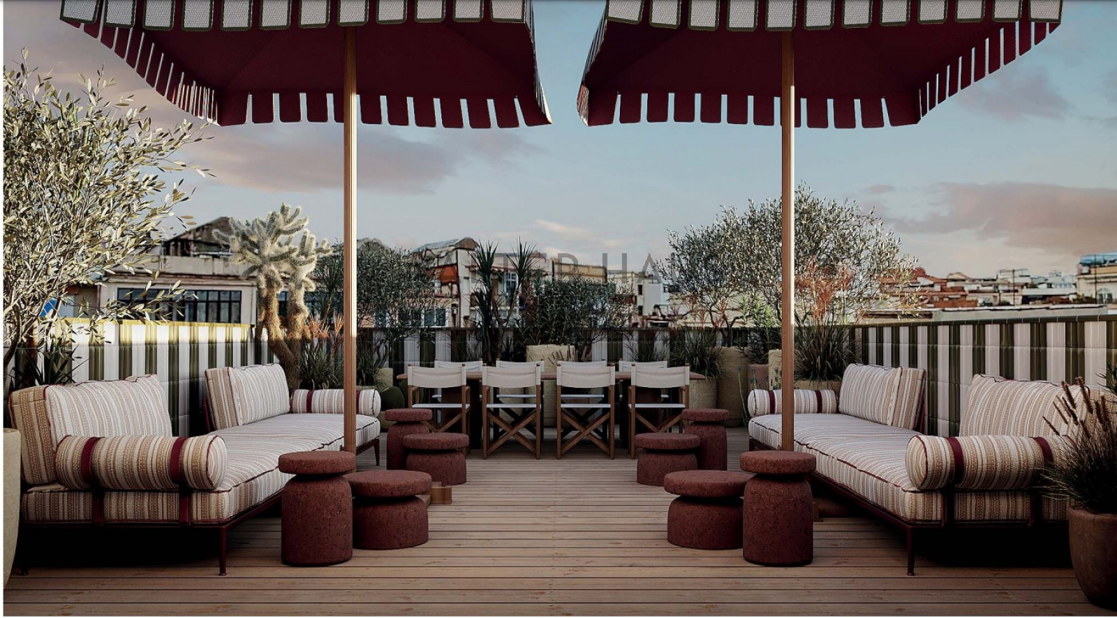 Todos los apartamentos disponen de salida a balcón y 5 de ellos cuentan con terrazas privadas de entre 10 y 50 metros cuadrados. El atico tiene terraza privada con vistas panorámicas a la ciudad de Barcelona desde donde se aprecia la Sagrada Familia.