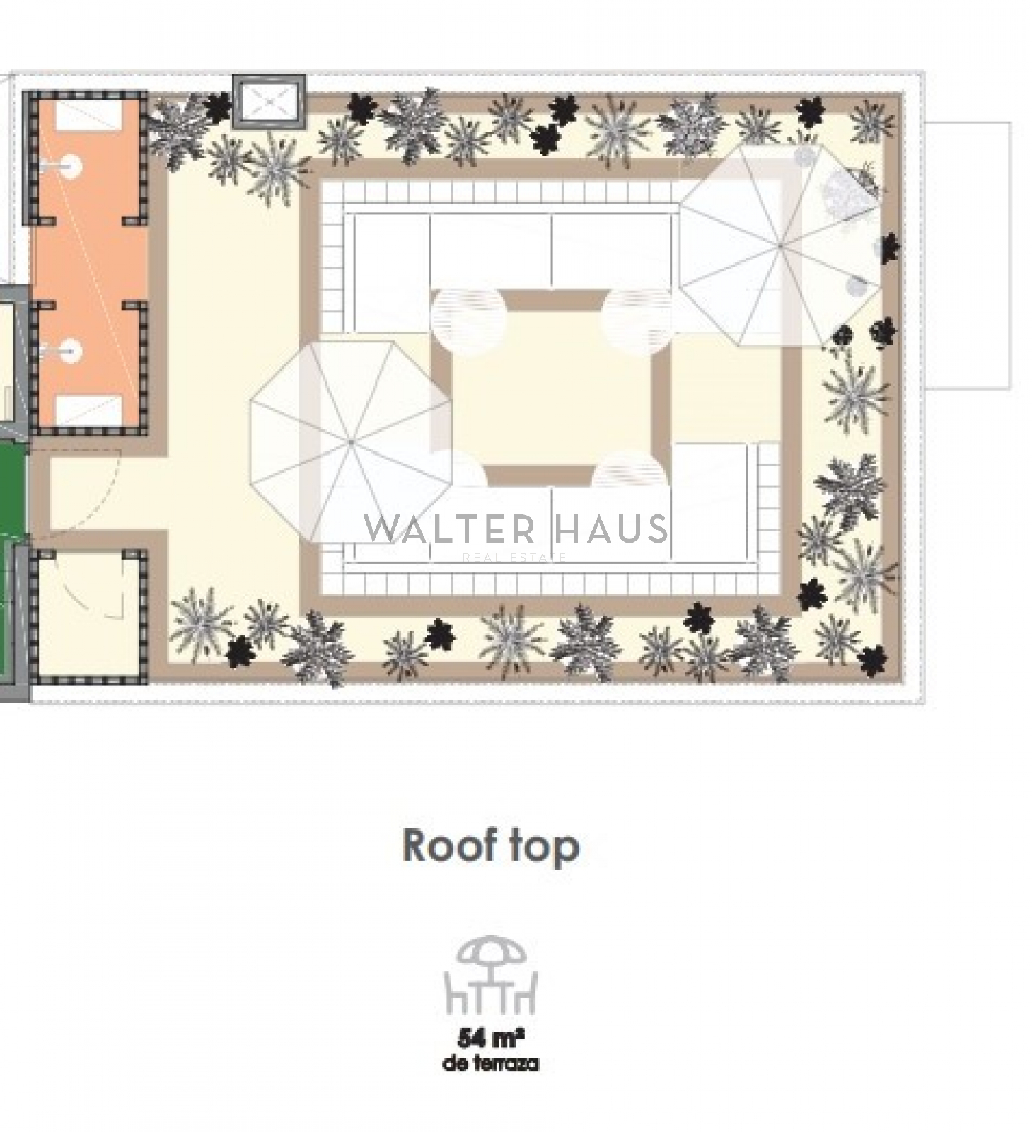las Zonas comunes del edifificio tienen aparcamiento para bicicletas, bodega de vinos, lavanderia y terraza comunitaria con duchas exteriores, lounge y barra social.